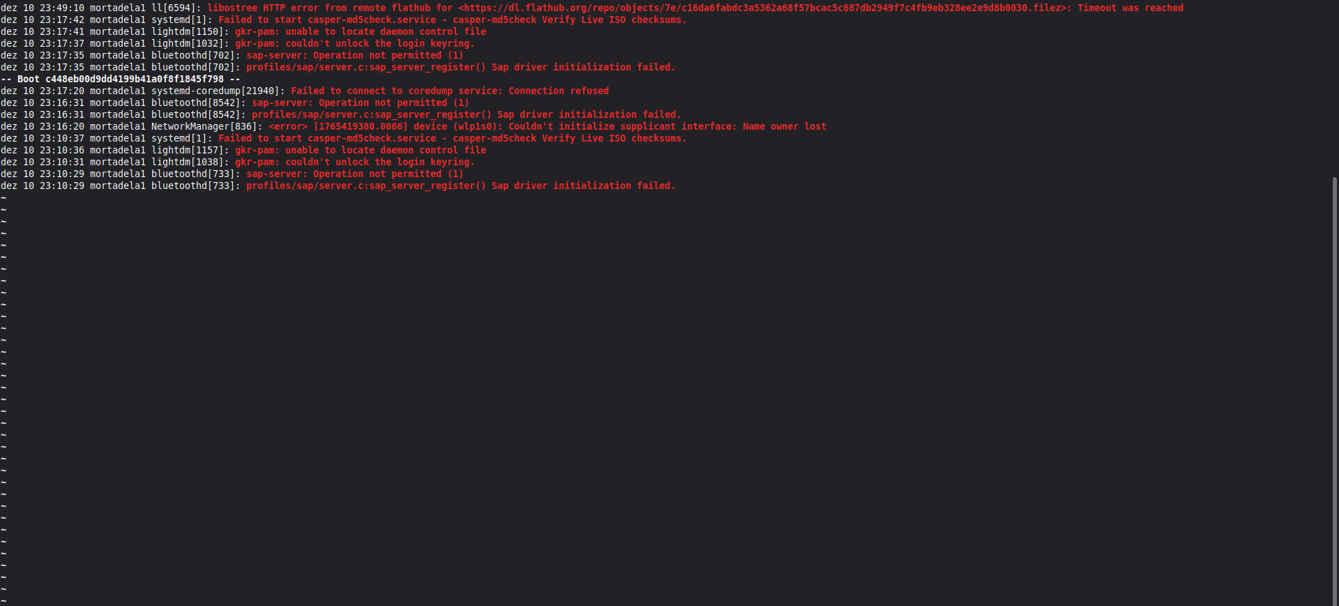 Esse comando gera um relatório em ordem reversa de data com filtro para erros do kernel. Daria para dar uma pista se houver erro no kernel.