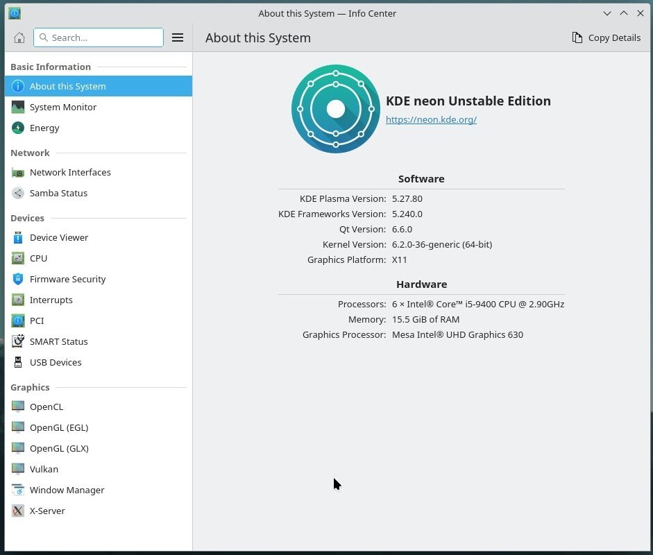 Fiquei curioso pra “ver” a diferença entre o (meu) Arch Linux e o KDE Neon Unstable do dia 7 – embora a comparação não seja 100% correta, devido às diferenças de empacotamento: