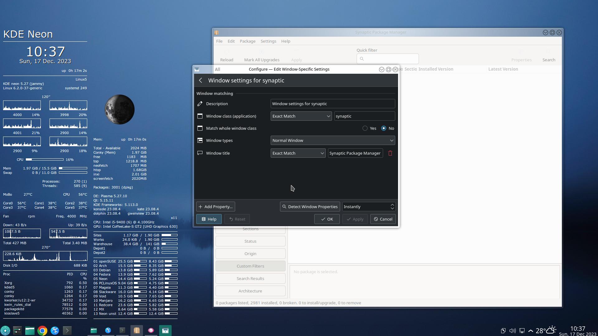 Fui ver como estavam as configurações do Kwin para o Synaptic e, “para variar”, apenas sumiram as especificações de tamanho e posição que eu costumava usar: