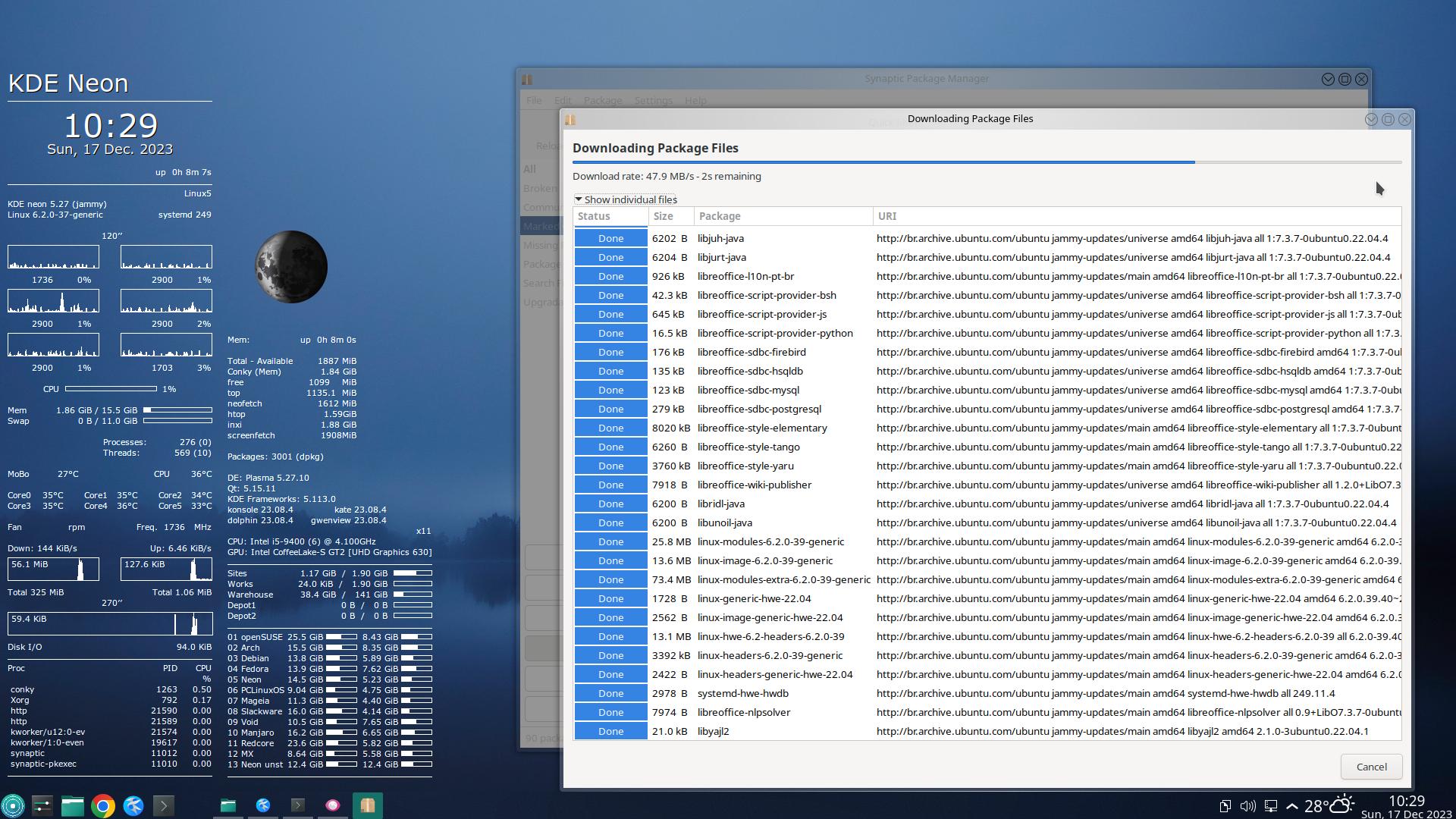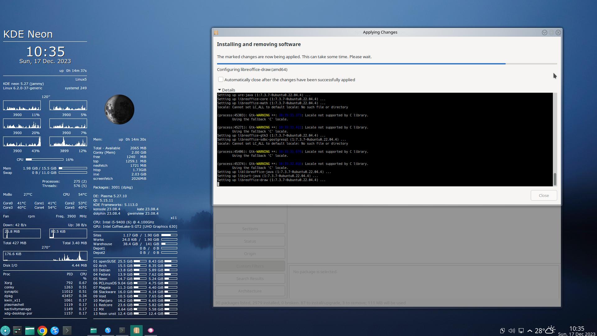 Importante: – Faz muito tempo, alguns pacotes “Qt6” vêm sendo instalados em quase todas as distros, embora permaneçam com Plasma 5 e inúmeros pacotes “Qt5”.