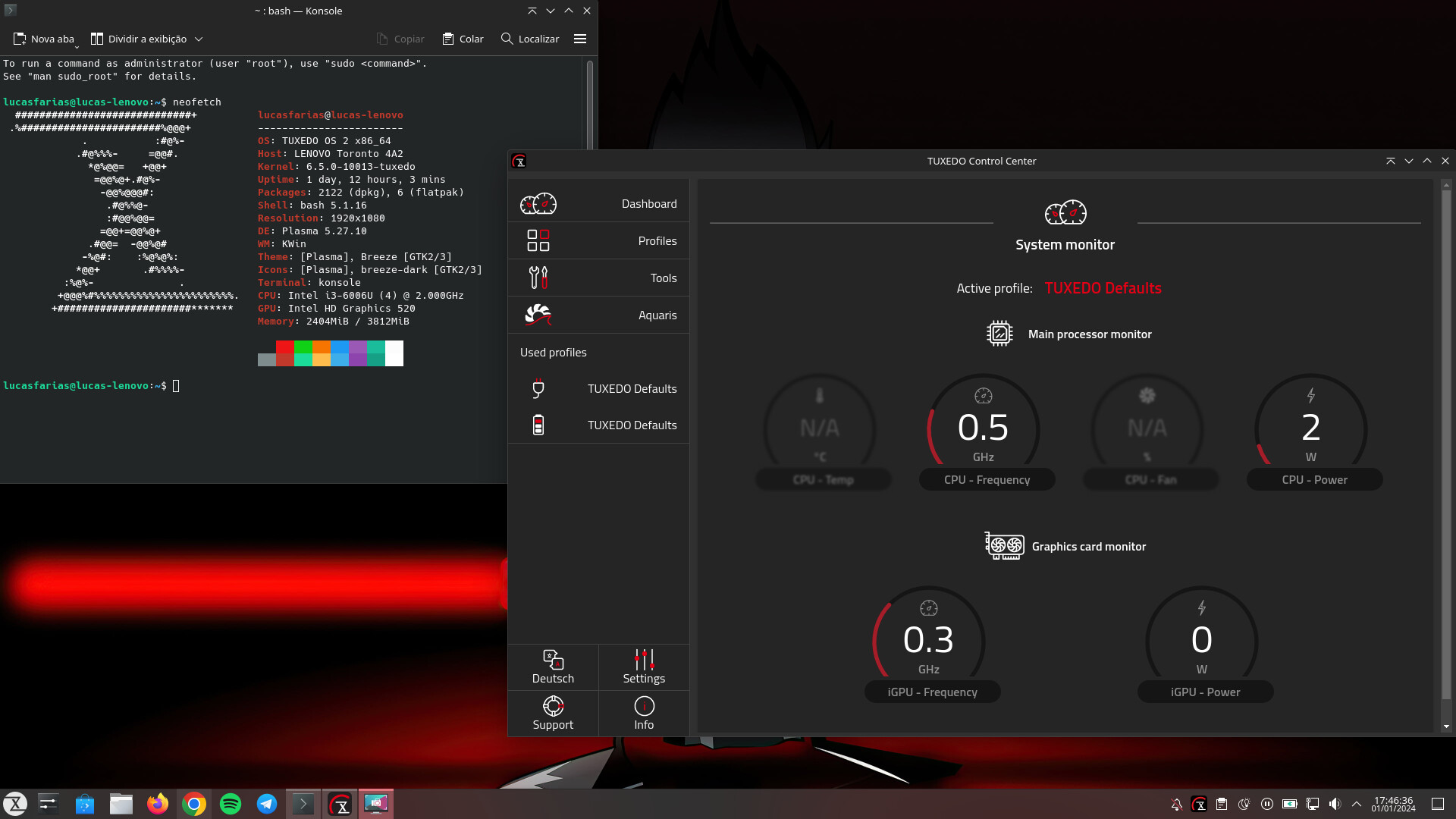 Então, quando eu instalei no impulso… a primeira coisa que veio a mente " dia 28/02/2024 tem o lançamento do Plasma6", se o TuxedoOS ainda está no X11 por padrão, e ser de uma empresa que distribui hardware, eles não irão atualizá-lo para o Plasma6 assim de imediato kk.