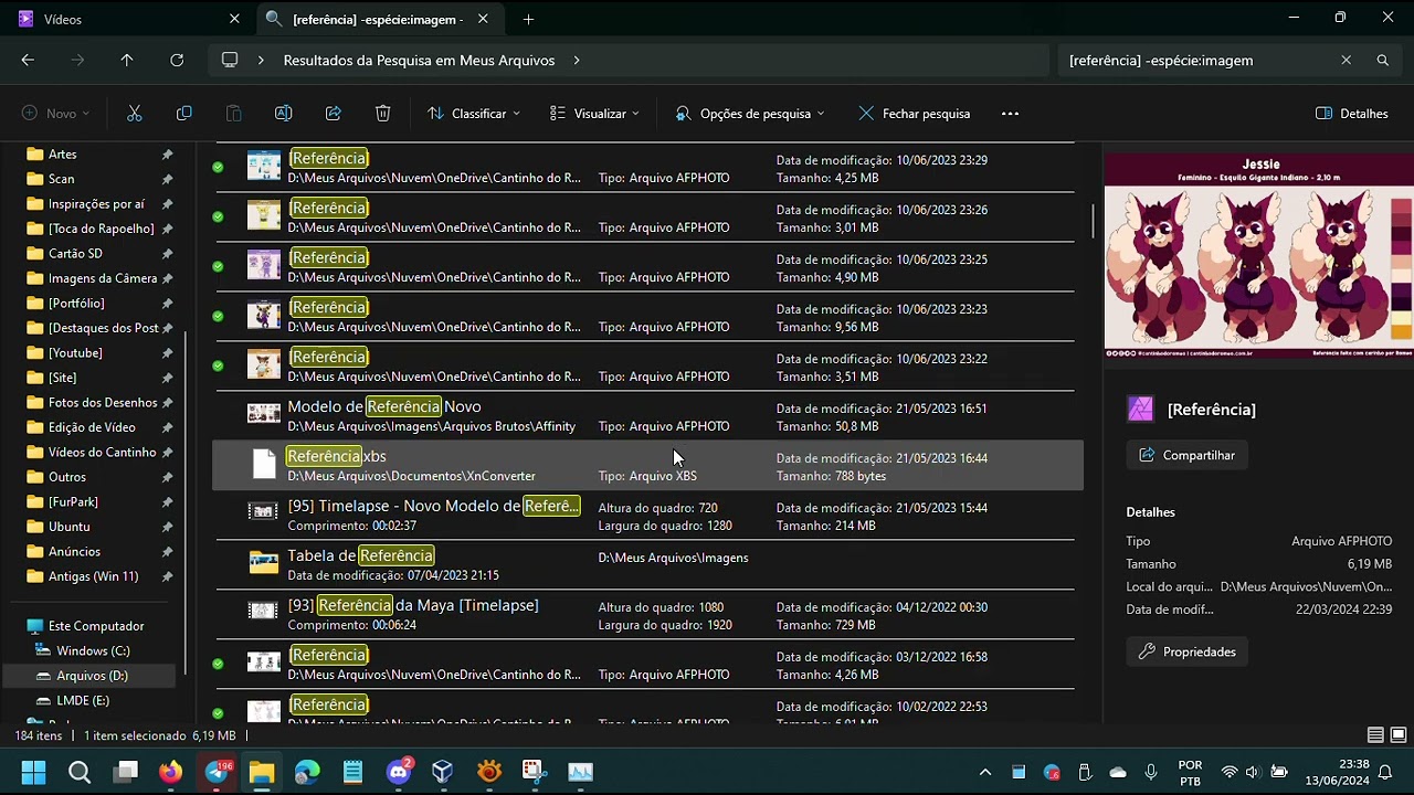 -fb img_: Para retirar todas as imagens que foram baixadas do Facebook e listar todas as imagens do rolo da câmera que estão no Onedrive.-fb -img_ espécie:imagem: Para listar todas as imagens, excluindo as que são do Rolo da Câmera e as que foram salvas no Facebook.scan_: Listar todos os Scans que foram feitos.*.afphoto: Para listar todos os arquivos criados no Affinity Photo[referência] -espécie:imagem: Pesquisar por [Referência], mas tirando as imagens.*.webp: Listar tudo que tem extensão .webp.