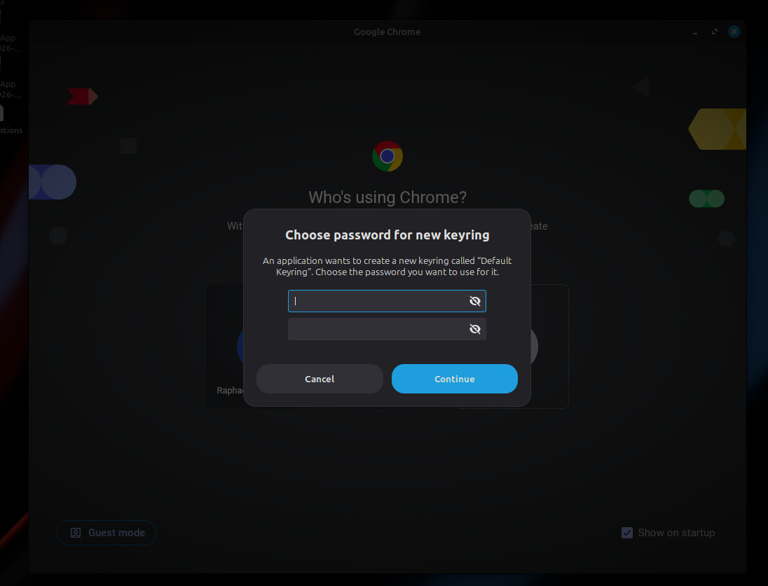 Estou com um problema bem chato no meu Linux Mint. De uma semana pra cá, sempre que eu reinicio o PC, ao tentar abrir o Google Chrome ou algum outro navegador, ele pede senha para criar um novo keyring no sistema.