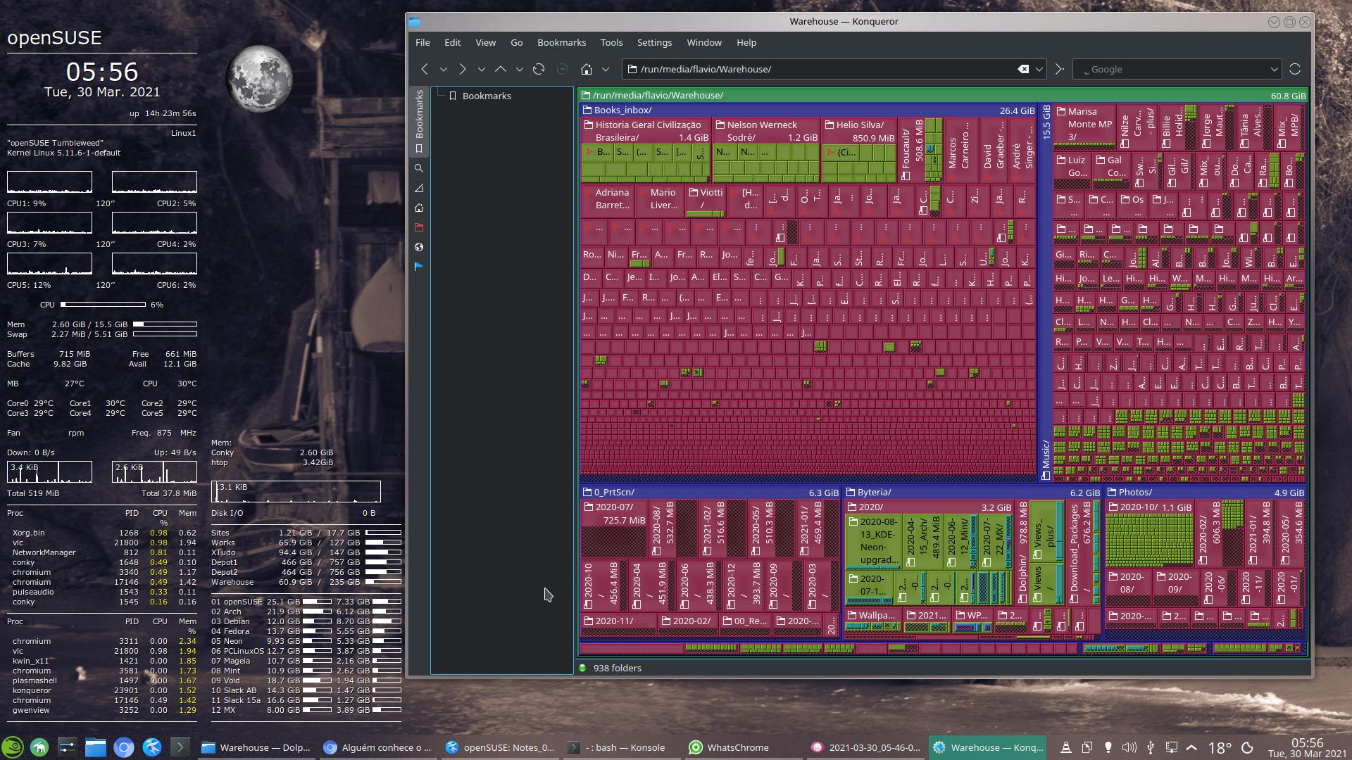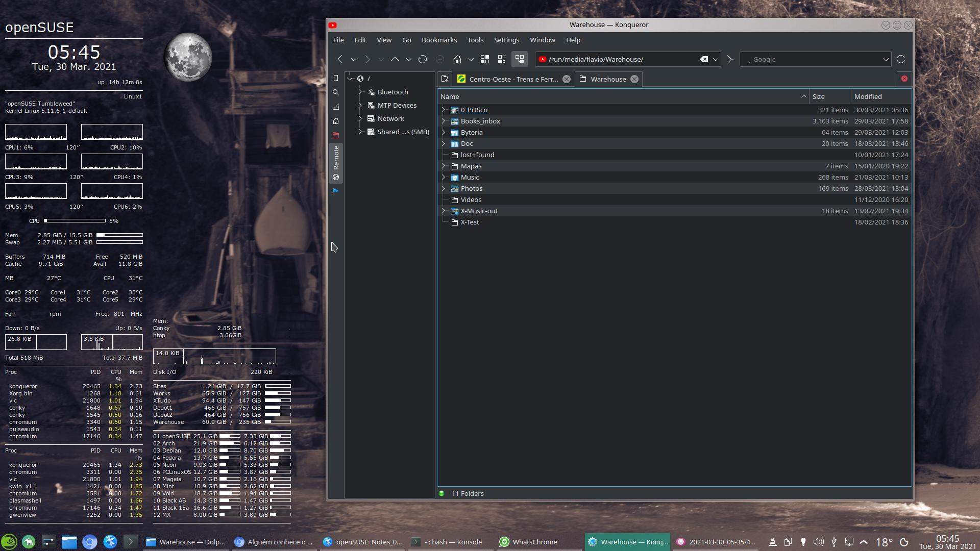 Descobri que o painel lateral do Konqueror está funcionando no openSUSE Tumbleweed.