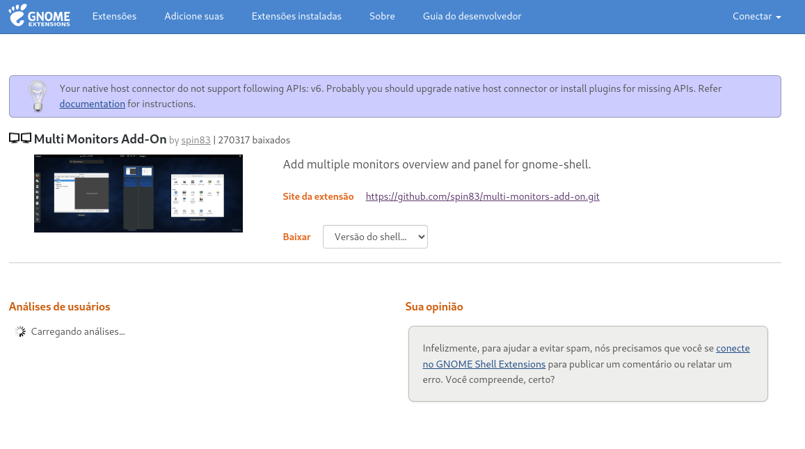 Quando entro na gnome-extension a pagina da extensão fica: