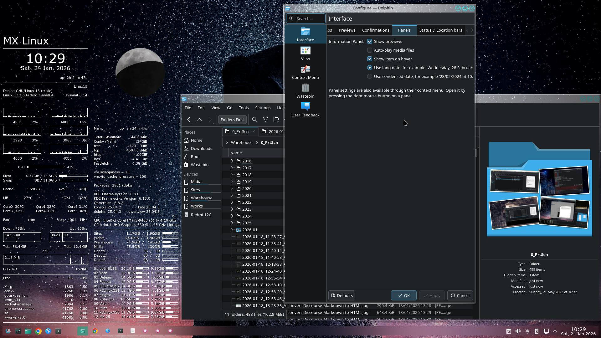 Configurações do Dolphin – em 11 das minhas 12 distros, com X11: