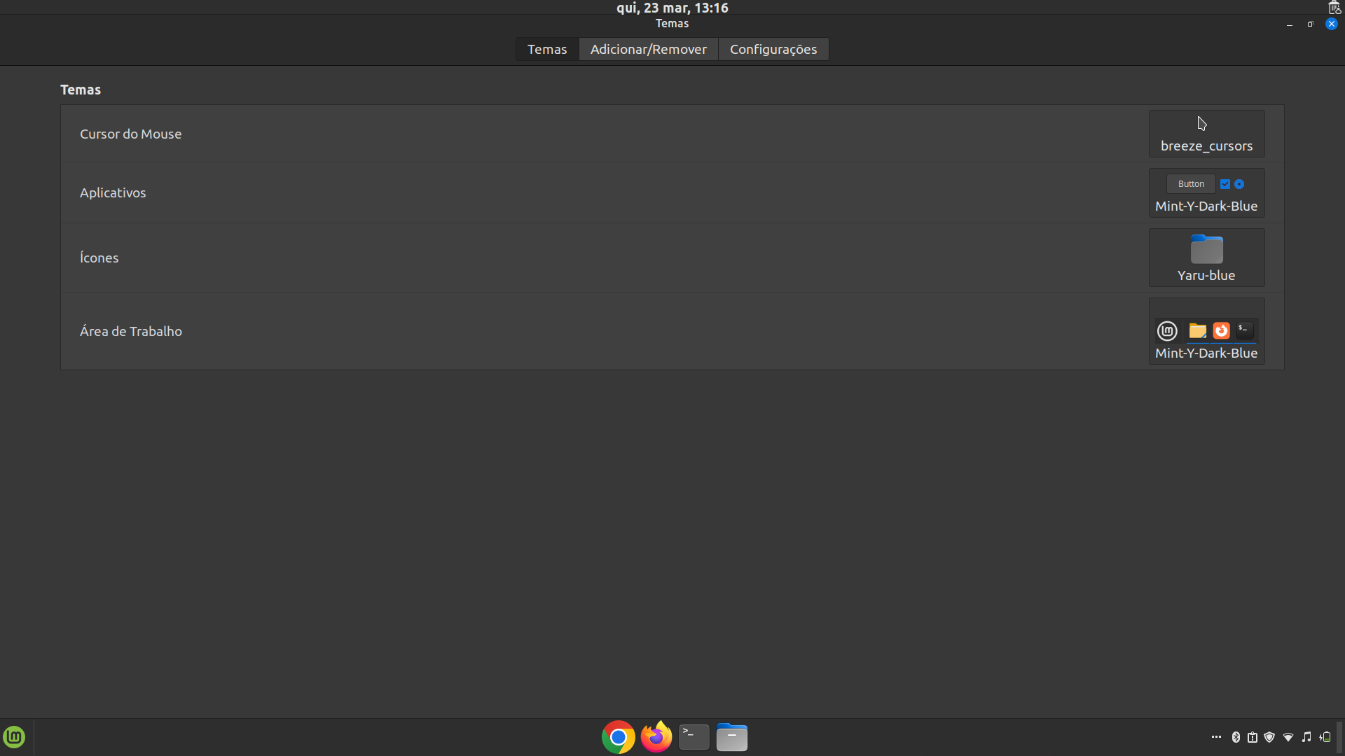 Bom, você já postou algumas capturas, onde vemos um Painel. – É o Painel original do Mint… ou algum Dock, Docker, ou qualquer coisa assim, personalizada? – Respondendo a essa questão, talvez tudo se esclareça.