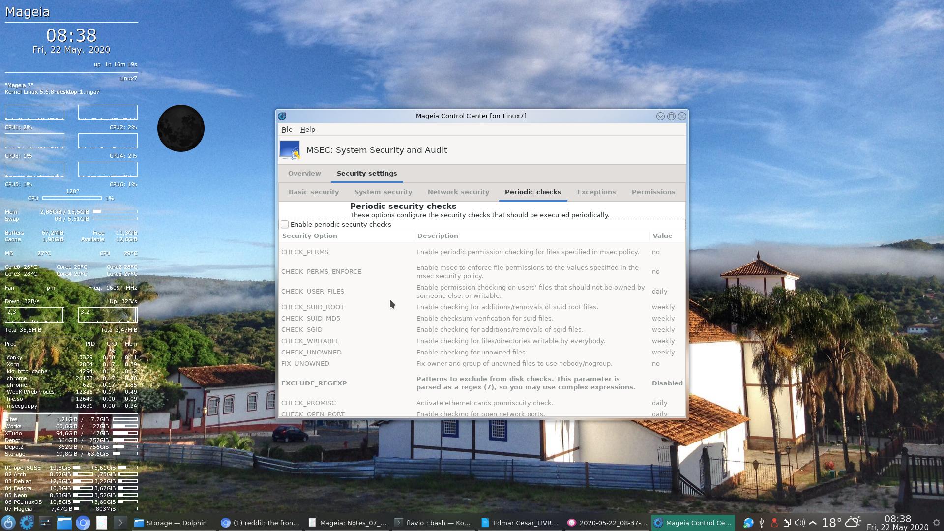 Vá em Configurações do Sistema → Configure a Segurança do Sistema, Permissões e Auditoria → Configurações de segurança → Verificações periódicas.