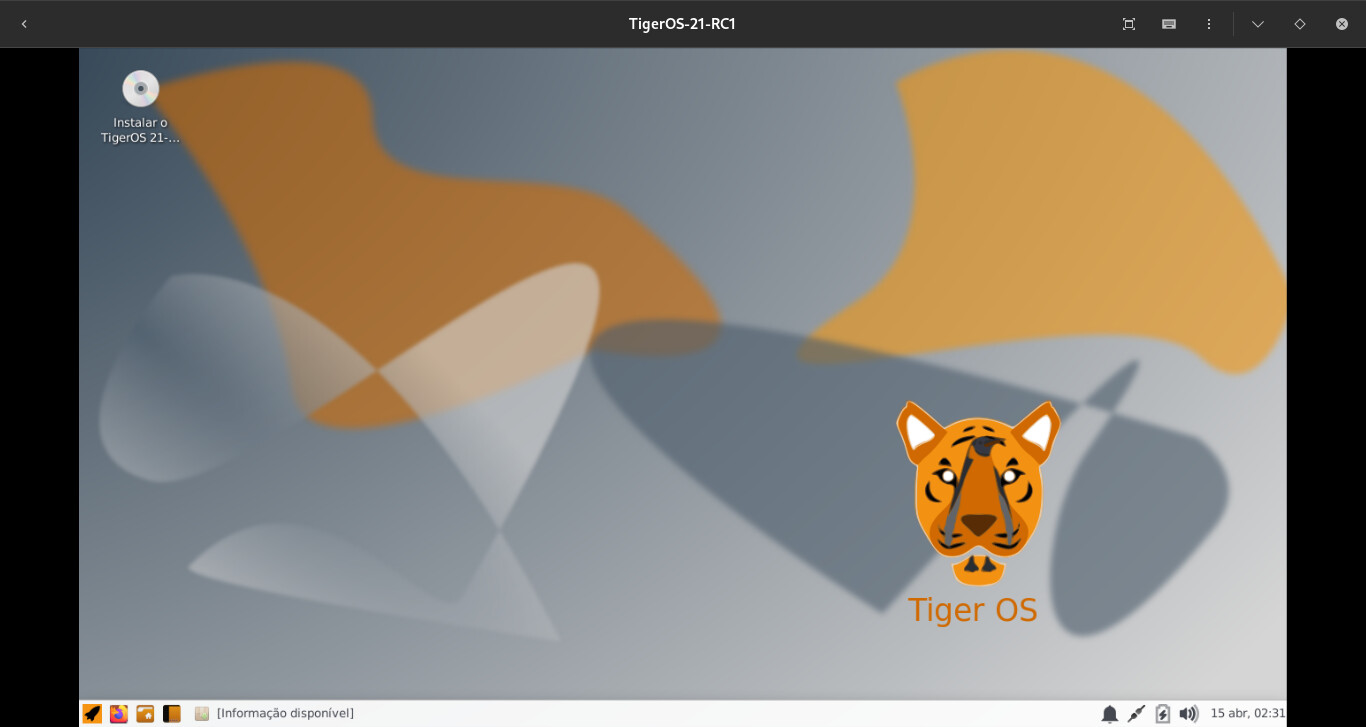 TigerOS 21, com os ícones Bloom, do Deepin 20.X, porém editado para a cor laranja. O menu é o Enso-Launcher, da ReFiSeFuQui Enso OS. Esse menu é uma continuação do Panther Launcher, com algumas melhorias, como ter um botão de Reiniciar, desligar, etc… no canto superior direito.