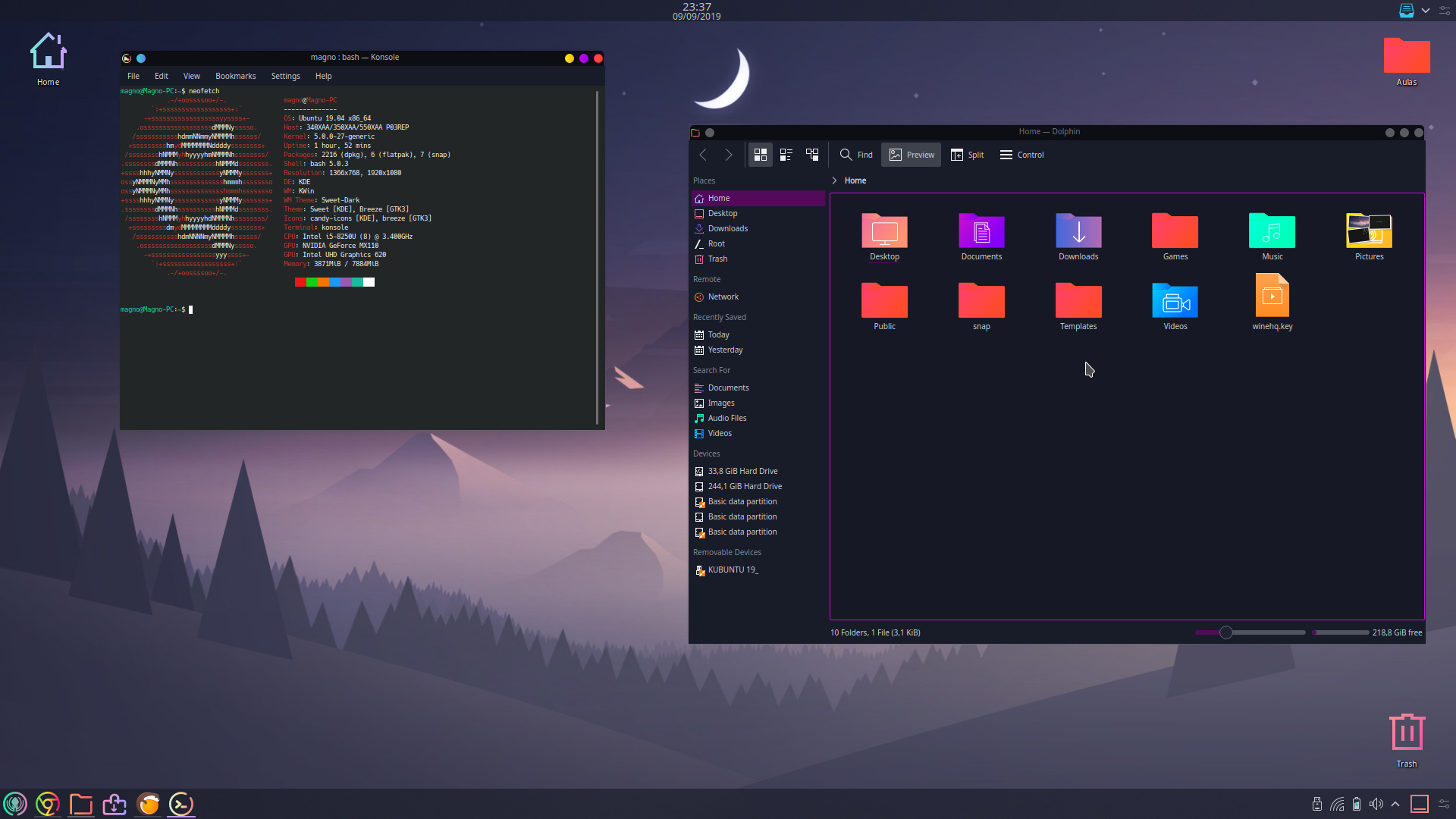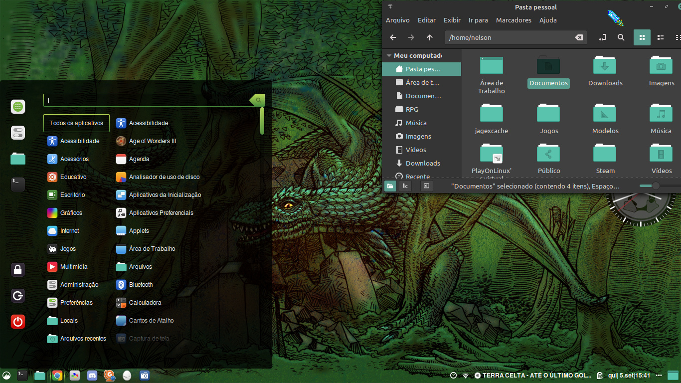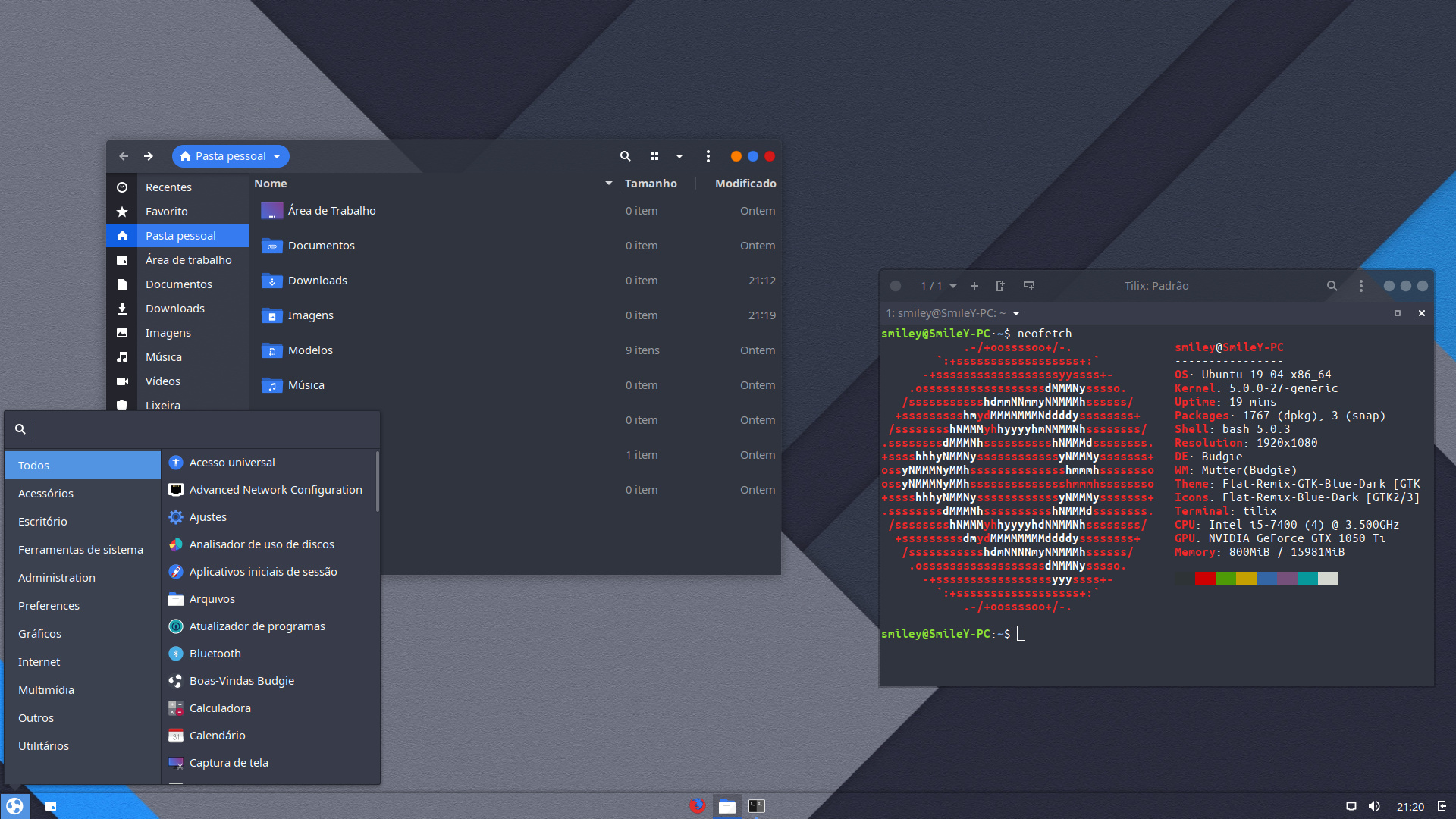 Cinnamon + Flat Remix Blue Dark, outra bagunçada no painel e o resultado.