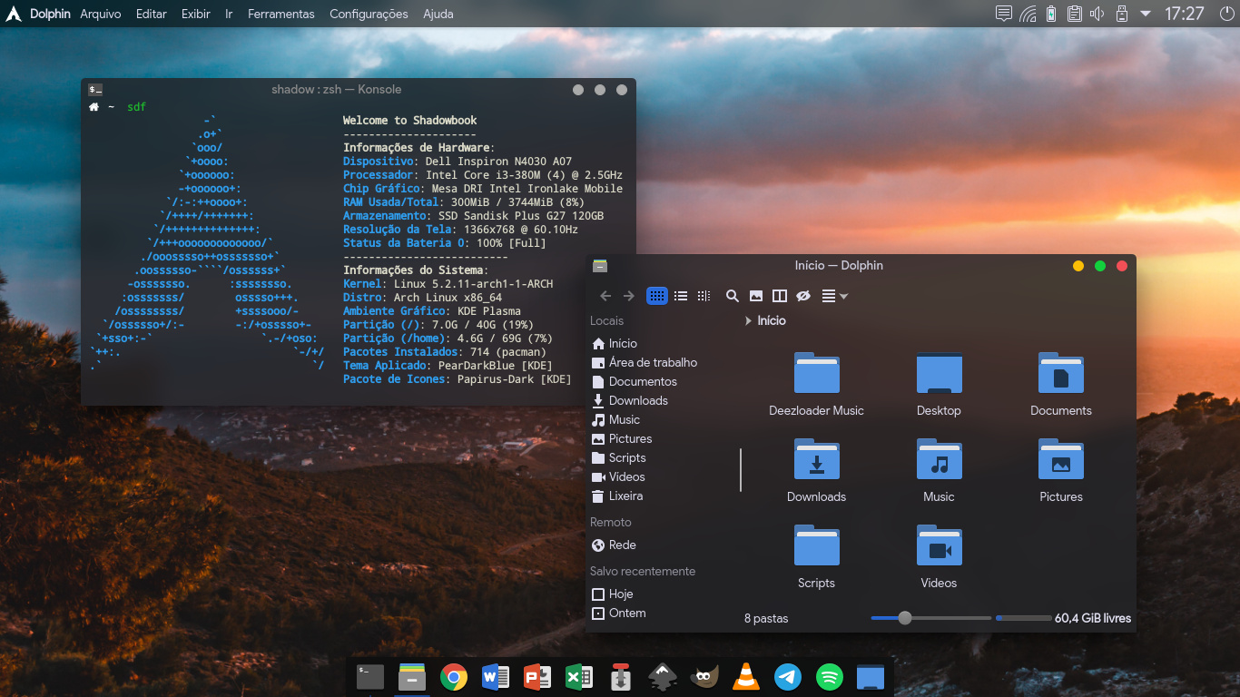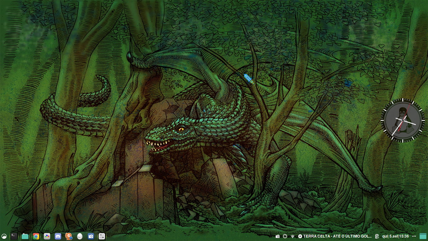 Montei uma paleta base16 usando as cores da imagem e coloquei no terminal. Também fiz um scriptzinho pra alterar as cores dos ícones do tema para as dessa mesma paleta.