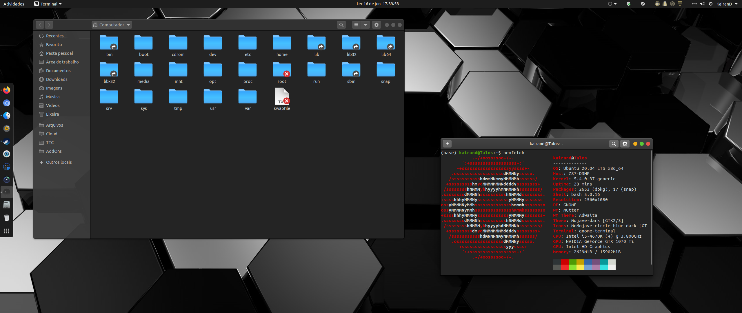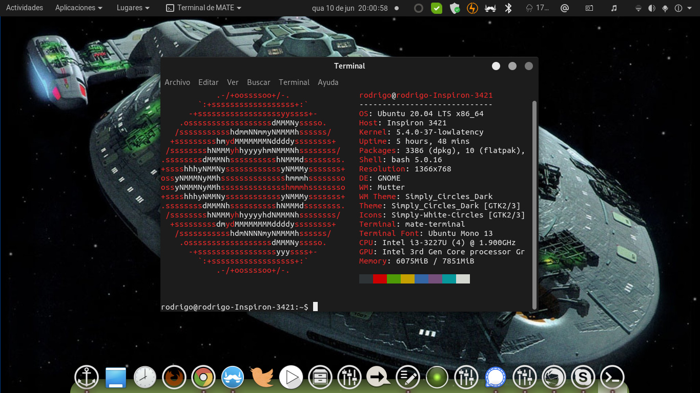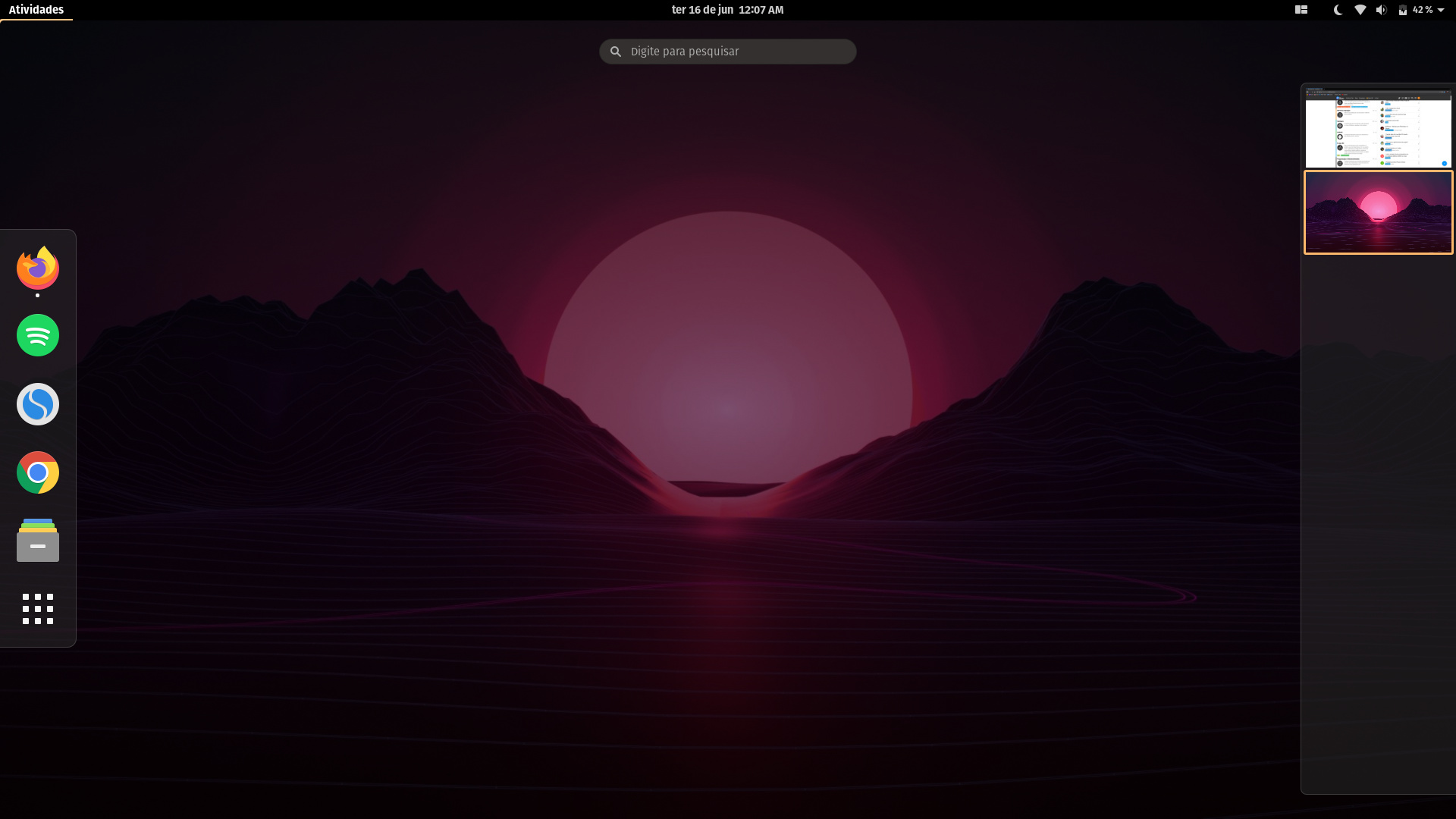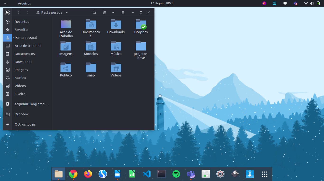 Ubuntu 20.04 LTS. Eu adorava lotar a barra de favoritos, mas agora estou procurando um visual mais minimalista, com menos distrações e voltado à produtividade.