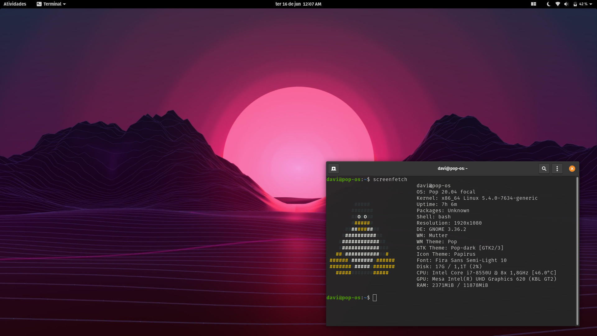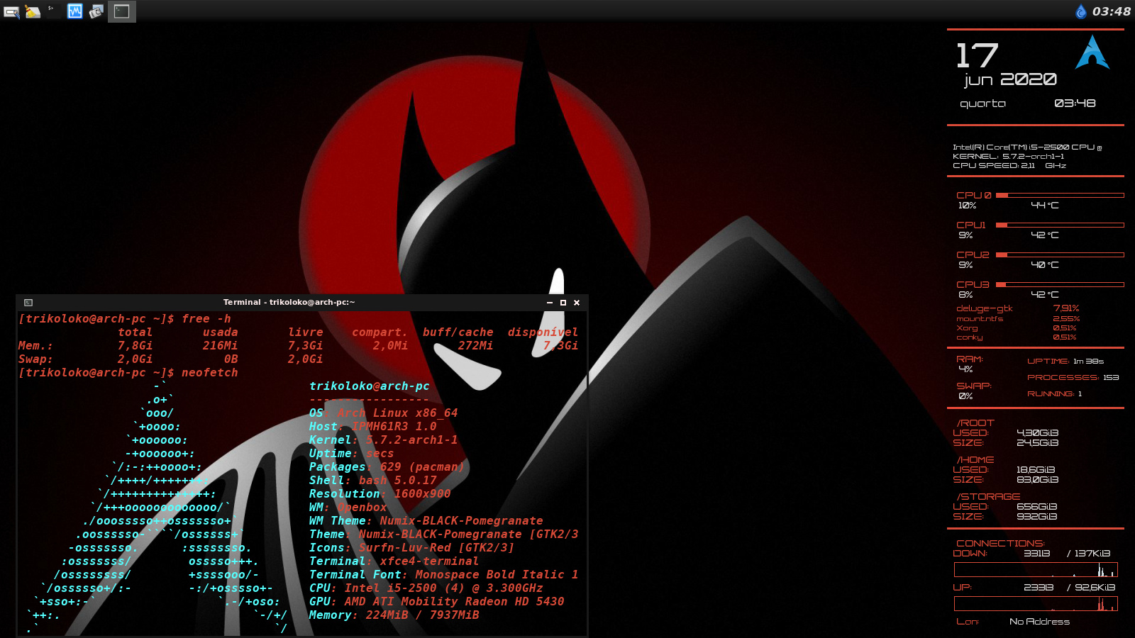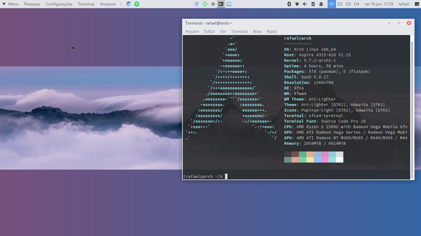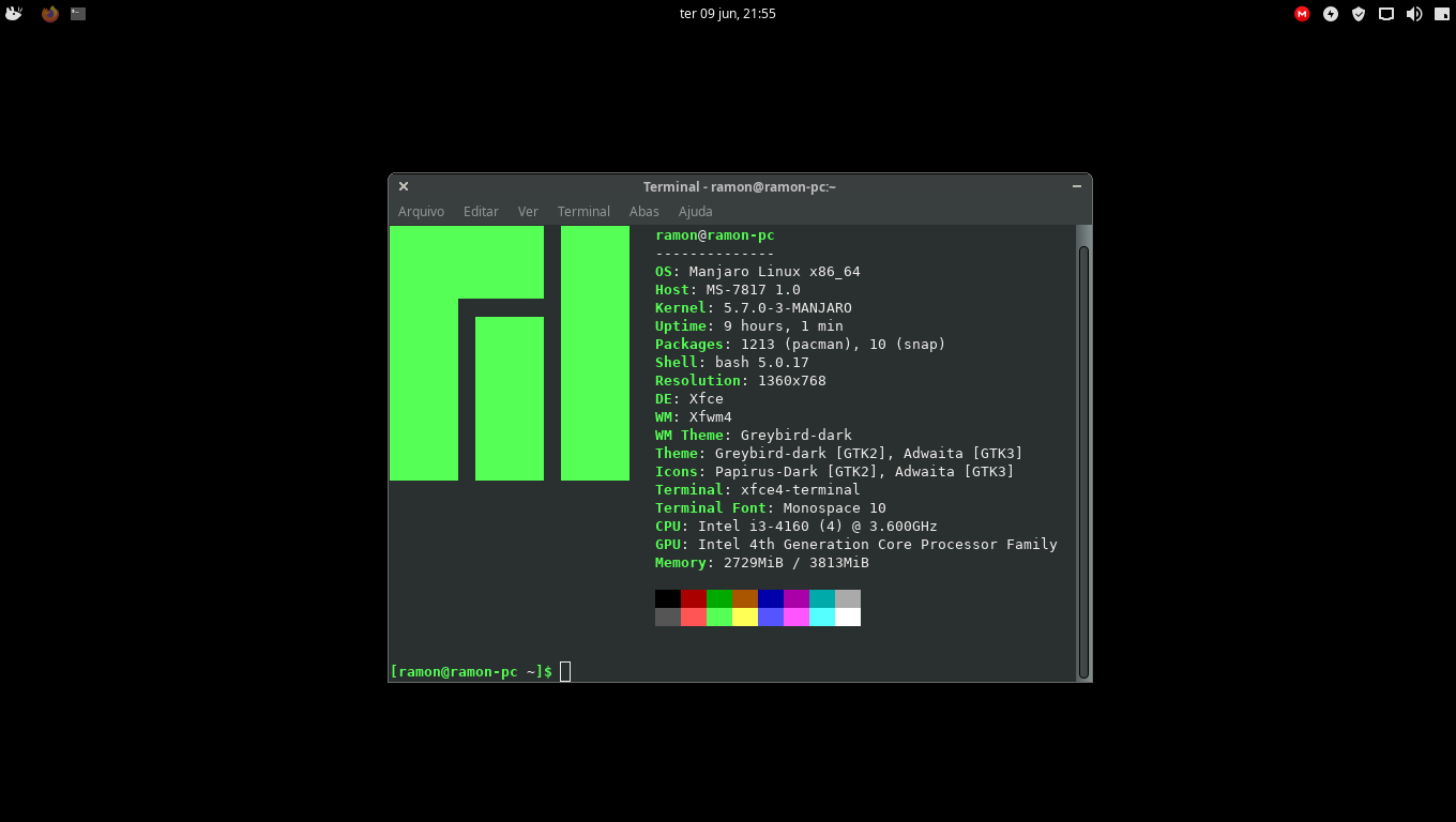 Segue o Neofetch (tá rodando pesadão por causa do Skype, estou numa reunião ao mesmo tempo que posto aqui):