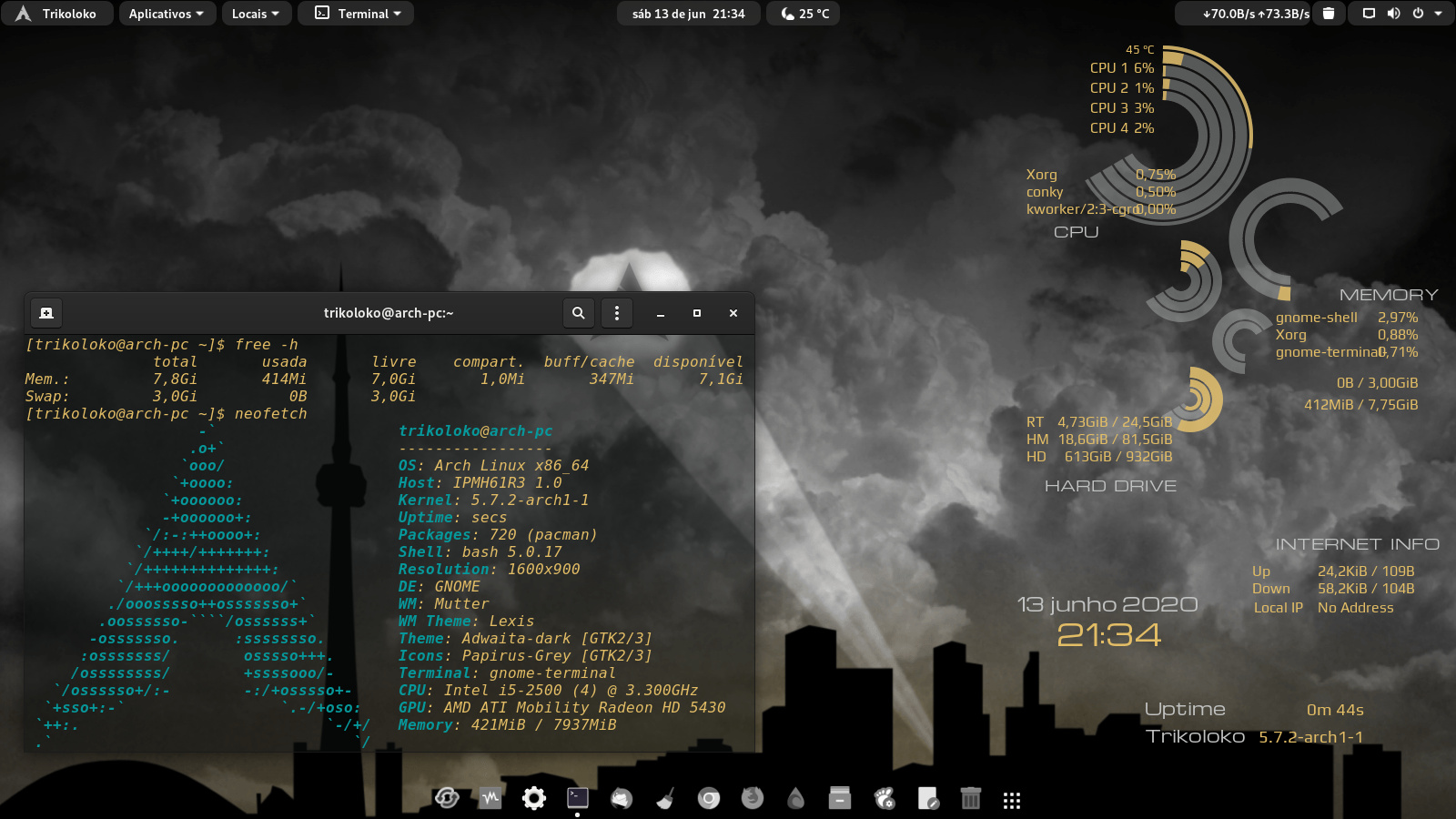 E está rodando e XOrg, ainda não tive coragem de rodar em Wayland - e nem sei se faz algum sentido, pois é placa de vídeo onboard e usa Mesa-Intel-Driver. Também está com o terminal do MATE pq o nativo do Gnome é horroroso…