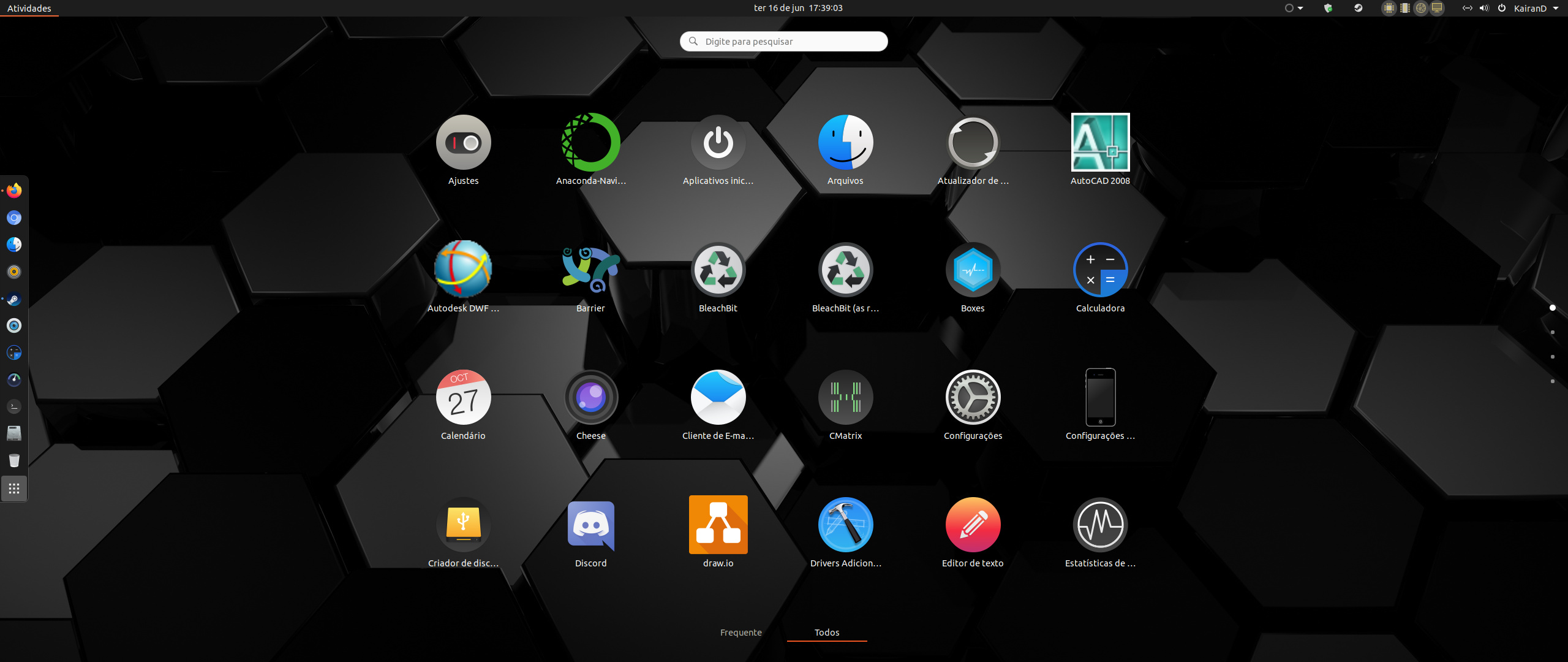 Agora tô começando a experimentar com o Gnome… mas quis deixar parecido com o que tinha no MATE. Aí deixei o Plank, instalei Dash to Dock e algumas extensões, inclusive a que mostra os apps na bandeja do sistema. Tive de instalar um app de captura de tela, a nativa do Gnome não quer funcionar nem a pancada!