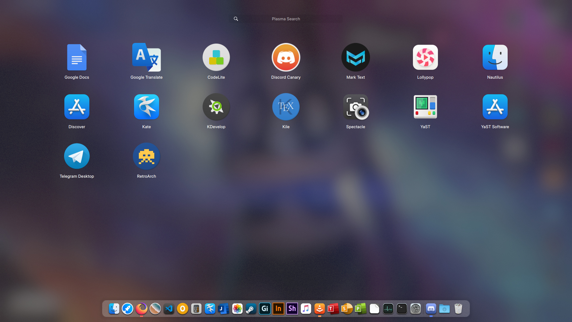 R: Latte-dock Master Branch. Baixei do repositório do trmdi para o openSUSE Tumbleweed. Para outras distros pode ser necessário compilar do código a menos que prefira usar uma release ao invés do master.