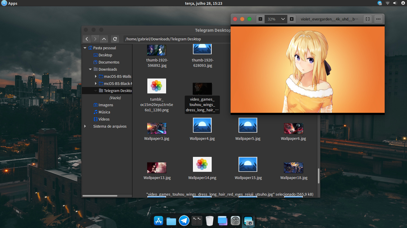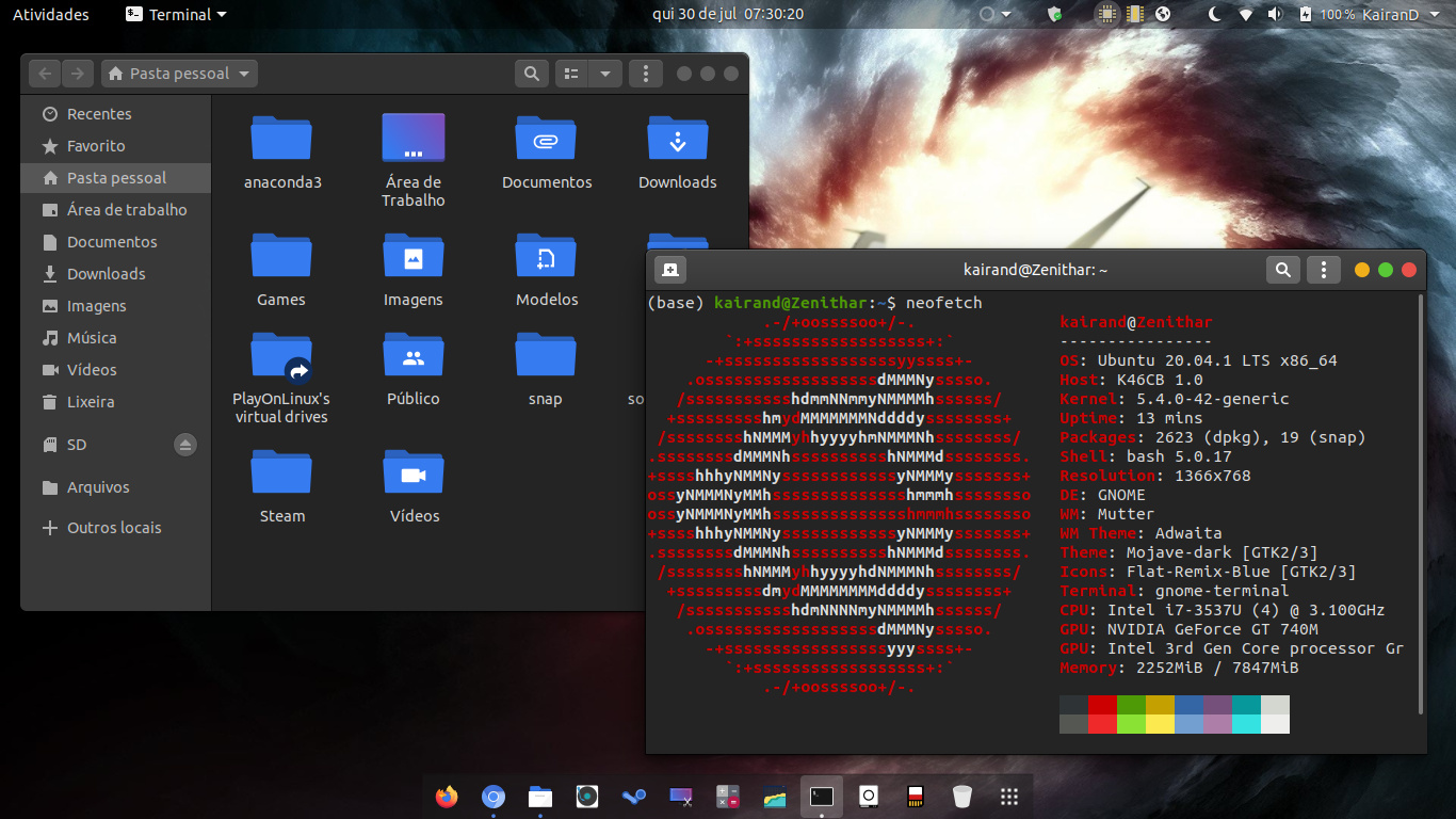 Não devia ter apagado o post anterior, mas gostaria de finalizar com algumas coisinhas que consegui mudar: íones do xfce4-wheater, ícone do Trello que não estava setado como do Papirus, wallpaper, posição da dock, e umas coisinha ali e acolá na dinâmica do Plank.