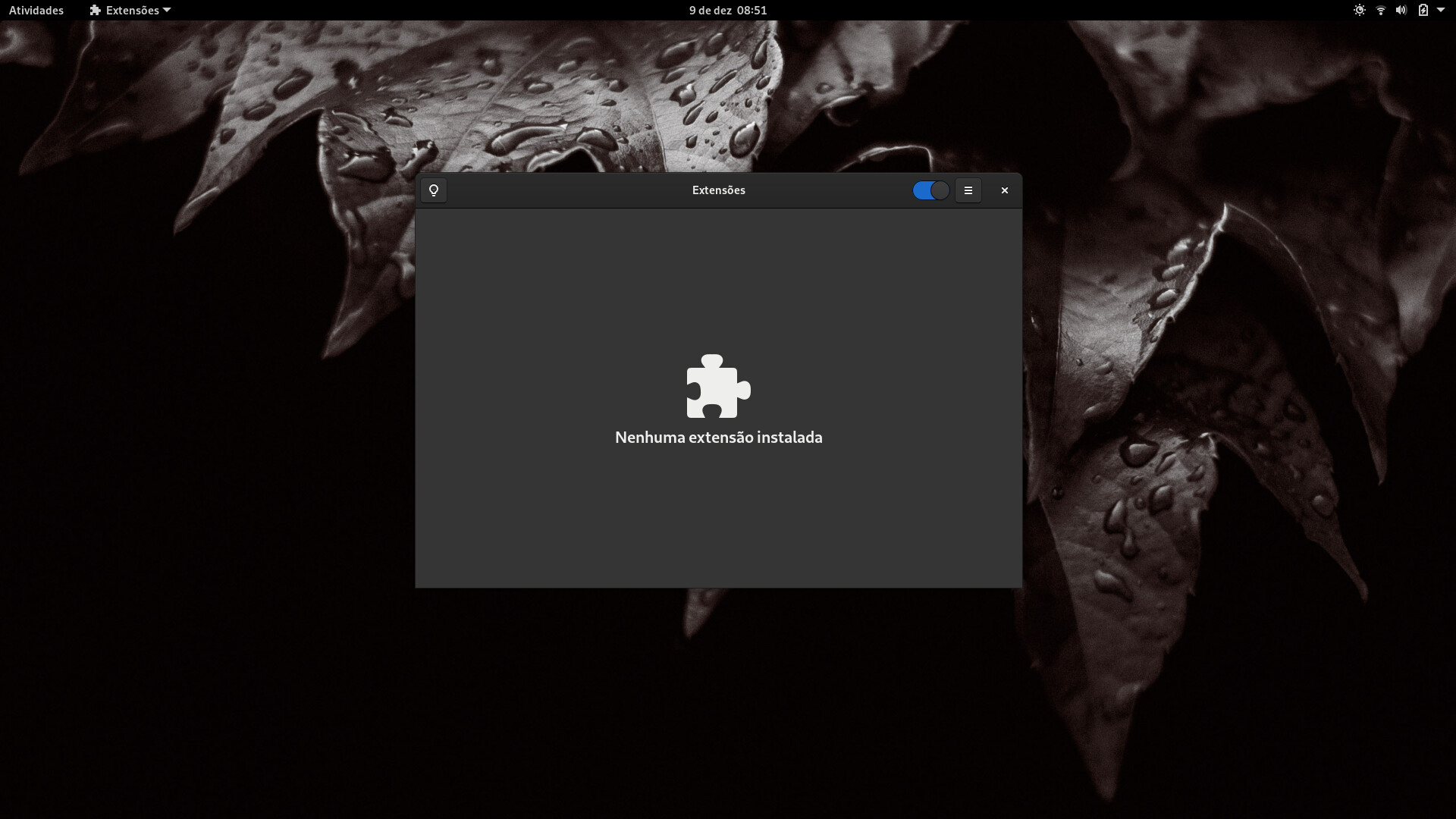 (raro ver um gnome extensions vazio assim!)Ubuntu 20.04.1 LTS com ambiente GNOME 3.36.3