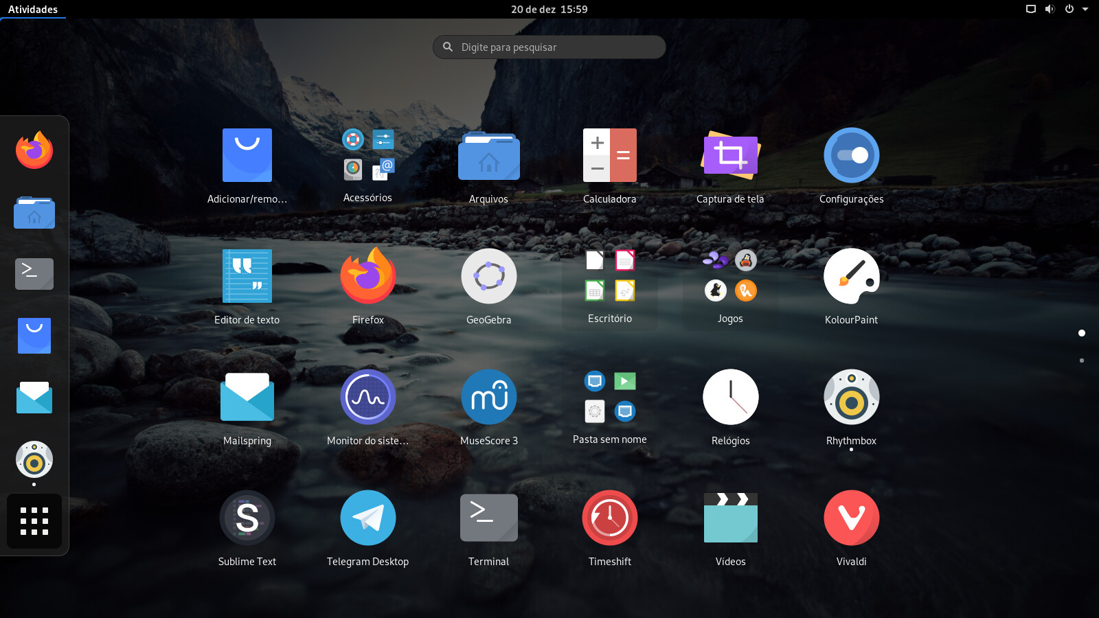 OBS: Não gosto de usar docks, uso a própria barra e o menu “painel de aplicativos”.