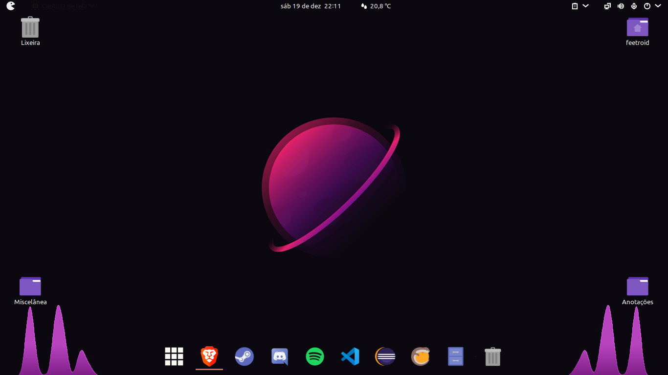 Eu uso o Glava, ele é um programa que capta a qualquer tipo de som do pc e corresponde com uma ‘onda’, quando eu usava o windows eu usava o wallpaper engine, aí quando fui para linux achei essa alternativa.