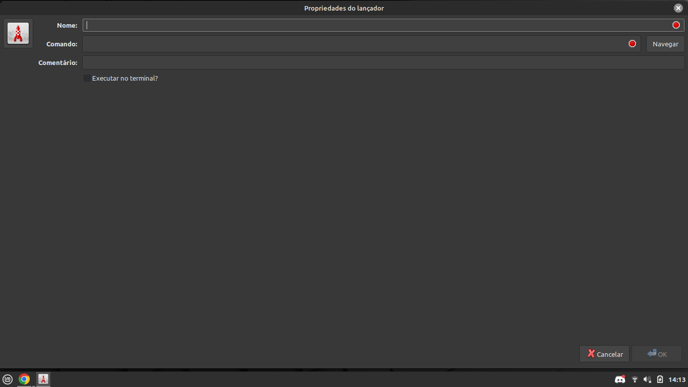 Uma dica, se acontecer isso novamente, você pode descobrir o caminho do executável de um programa com dois comandos, o “which” ou o “type -p”. Exemplo, usando o gimp. Se você abrir o terminal ai e digitar “type -p gimp” o resultado será “/usr/bin/gimp”. Ai é só adicionar lá na opção “Comando”.