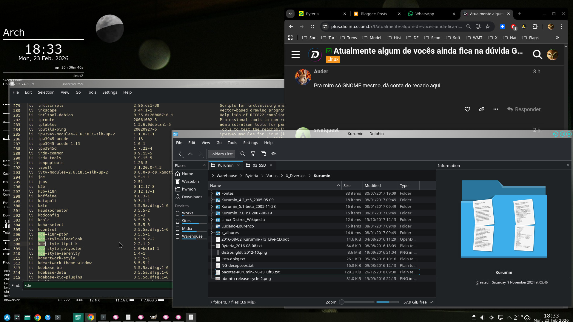 Sobre KDE é muito completo até demais para meu gosto. Gosto de coisas minimalistas e também tem a questão do programas que estou acostumado serem em Gtk.