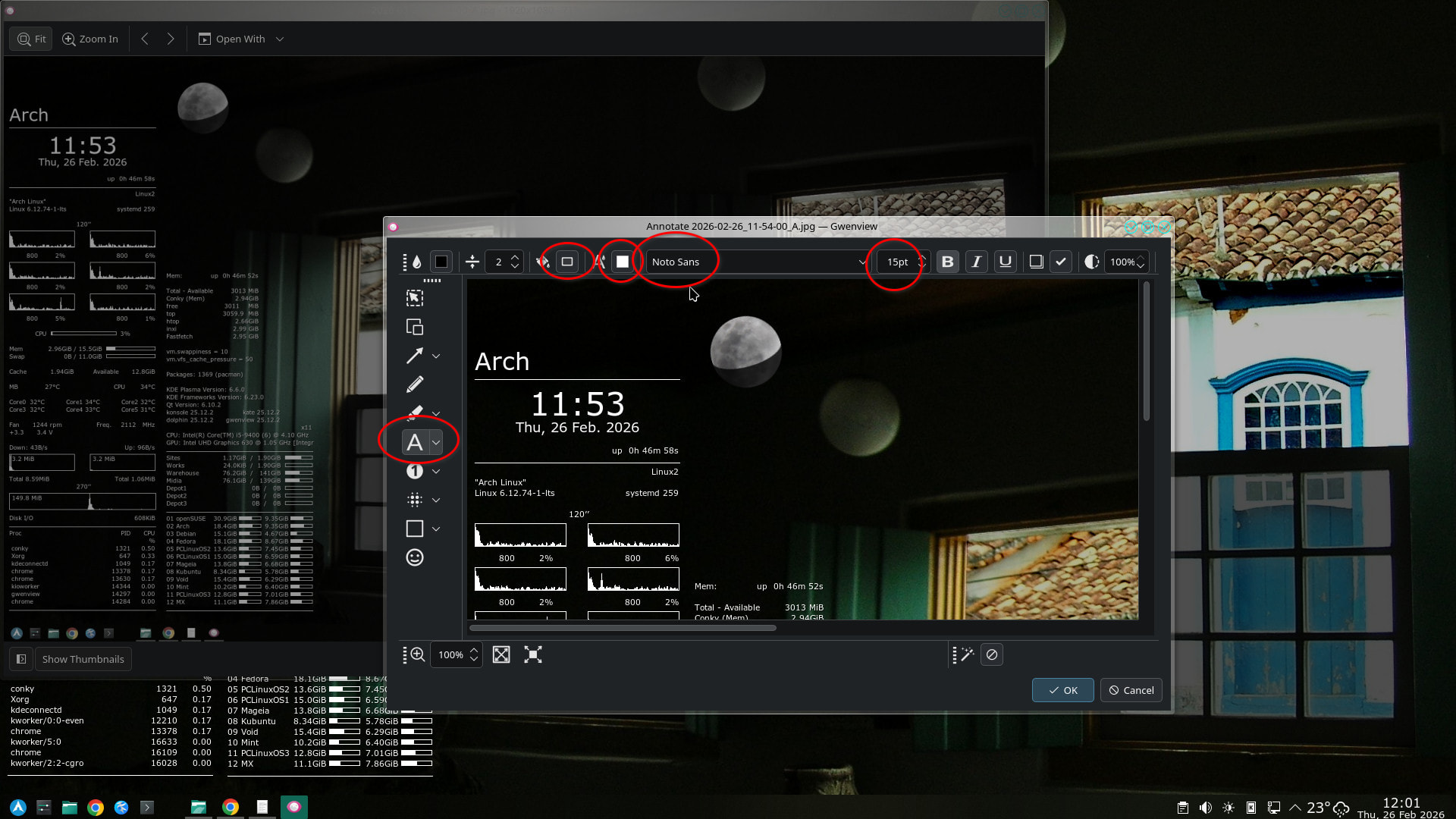 O “kimageannotator” (Shift+A), que vem com o Gwenview, não guarda as configurações que a gente faz. – Toda vez, precisa configurar tudo de novo: – A fonte, tamanho da fonte, com caixa ou sem caixa em volta de texto, cor do retângulo (com ou sem preenchimento) etc.:
