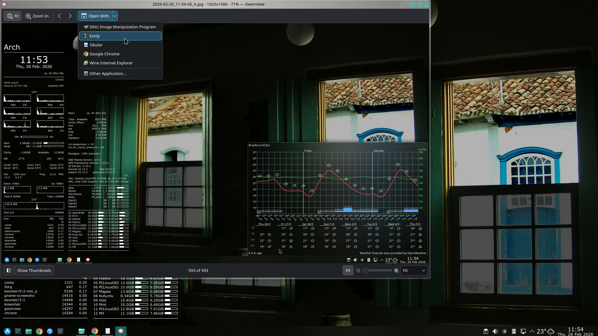 Aí, a gente pode instalar o “ksnip”, que vem com o Spectacle, e que é mais completo – e pode-se incluir no Gwenview entre as opções de “Abrir com”: