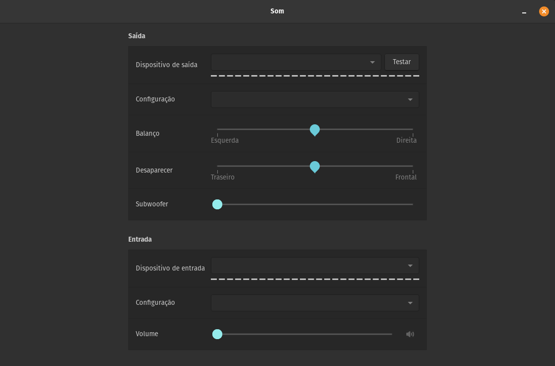 Ando utilizando muito terminal para praticar, e acabei fazendo algo de errado com meus drivers de som. Agora, no painel de configurações não consigo mais selecionar qual dispositivo vou utilizar. Detalhe que o microfone e fone continuam funcionando normal. Isso começou apos eu tentar resolver um problema de chiado no microfone (situação pela qual eu não passava no Windows) e segui os passos presentes neste tutorial: