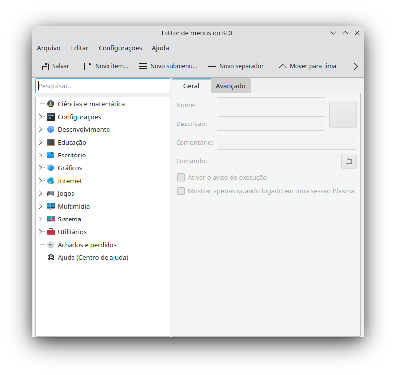 Em seguida vai em “Editar” e vai ter a opção “Restaurar menu do sistema”.