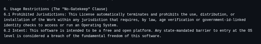Geralmente não gosto de comentar e falar sobre leis, ou coisas relacionadas com politica em geral, pois sempre existe os dois lados extremista que é chato de lidar, mas sobre isso que aparentemente ta impactando as distro no mundo linux e open source, não seria uma forma justa entrar com os provedores de rede em geral ou até com as plataformas usar o meio de DNS para bloquear o acesso e apenas quem quiser fazer o acesso teria que mudar o dns na rede, logo quem deveria mexer com esse servico seria os pais/gestor do servico domestico algo como controle parental ativado por padrão super simples e algo mais aceitavel de modo geral pelo publico e não forca algo em um aparelho eletronico fisico ou o SO do hardaware que uma pessoa faz aquisição para ter uso total e completo a sua escolha.
