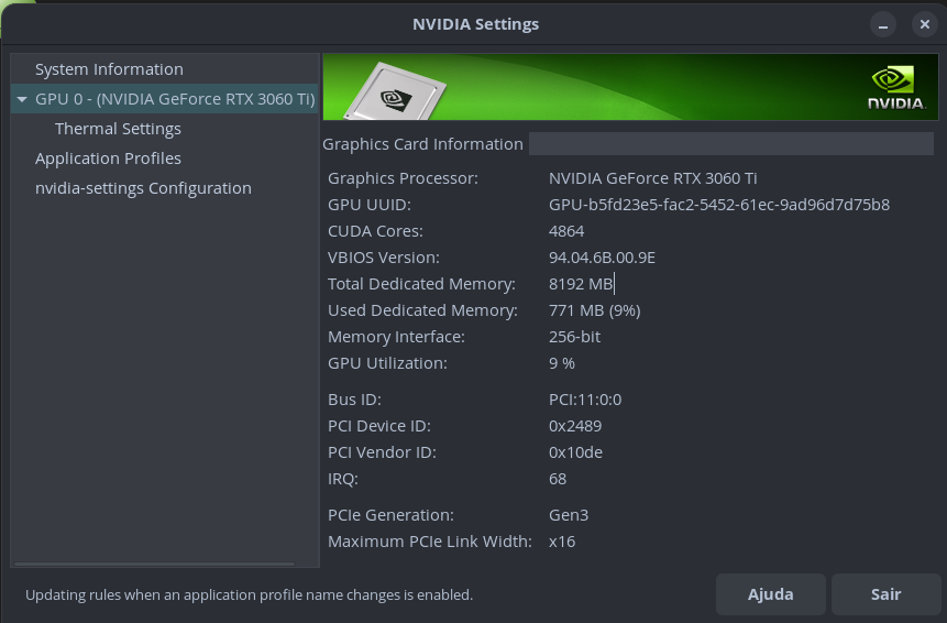 Sobre o app da nvidia, não encontrei essas opções: