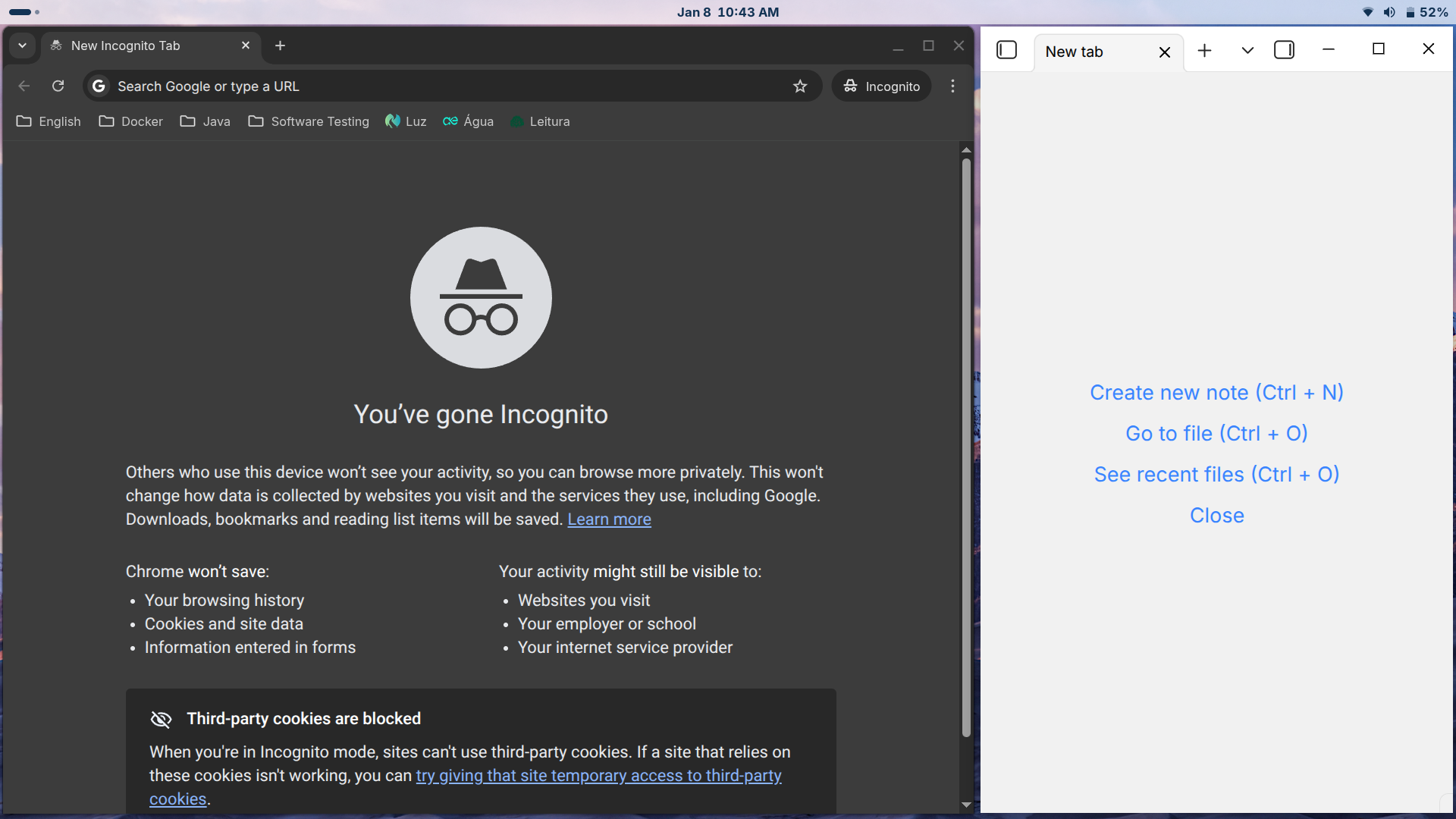 Isso não é bug do Zorin, Chrome ou Obsidian.