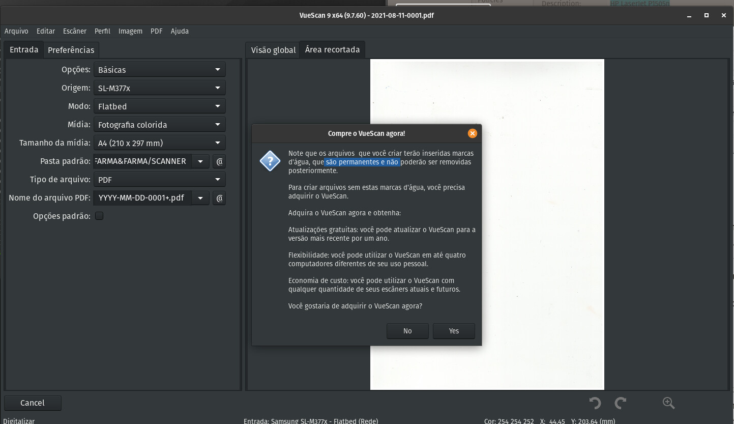 Complicado… Se for de extrema urgência, recomendo usar o VuewScan mesmo com a marca d’água. Encontrei mais uma forma de instalar o driver, vê se o Scanner pega agora: Instalador do software para impressora Samsung
