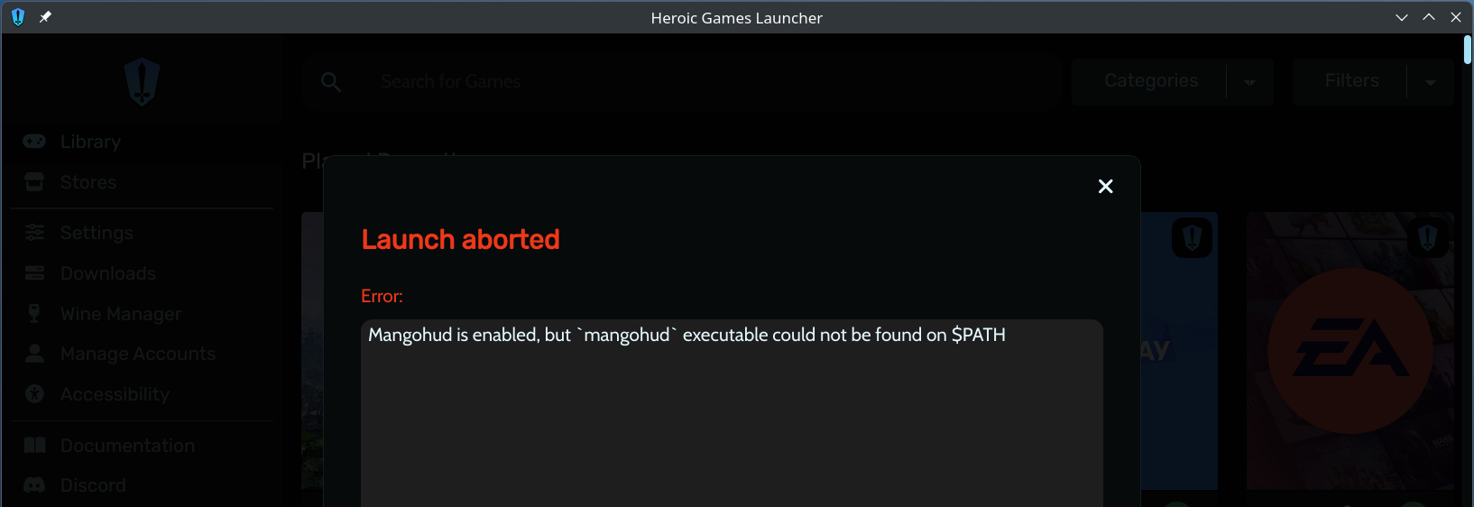 - Se você tiver qualquer outra versão do MangoHud instalada no sistema, o Heroic vai se perder e não vai conseguir identificar a correta.