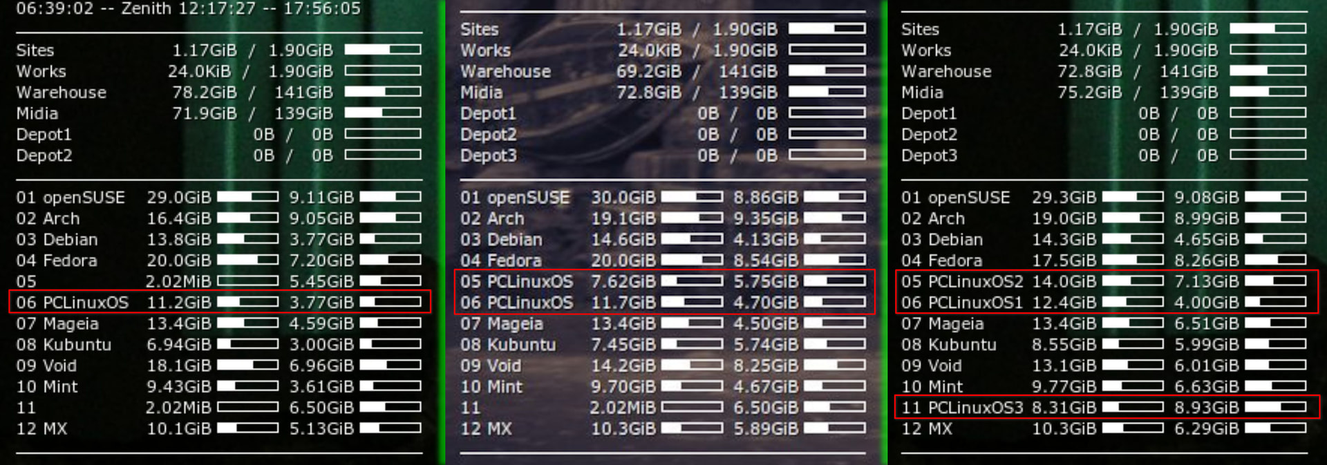 2 instalações (uma após outra) na partição “Linux11” (vazia) – digamos "PCLinuxOS(3)