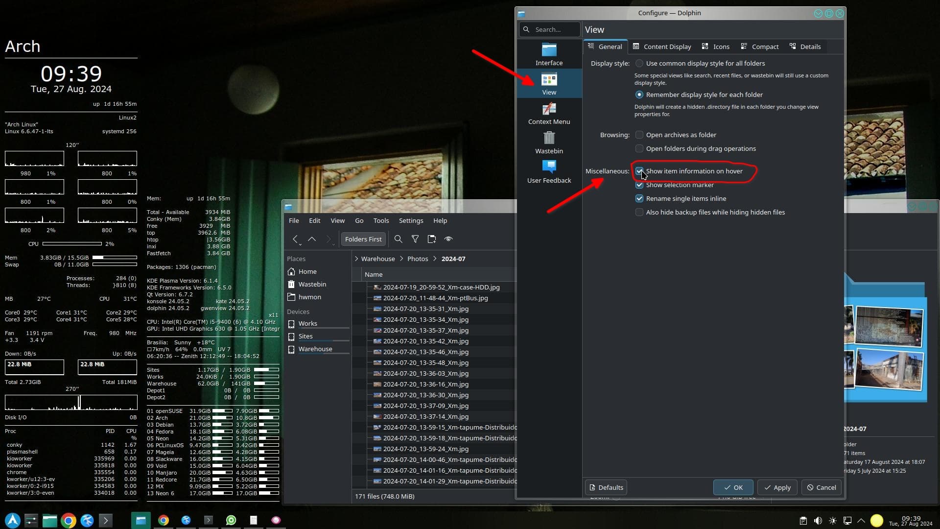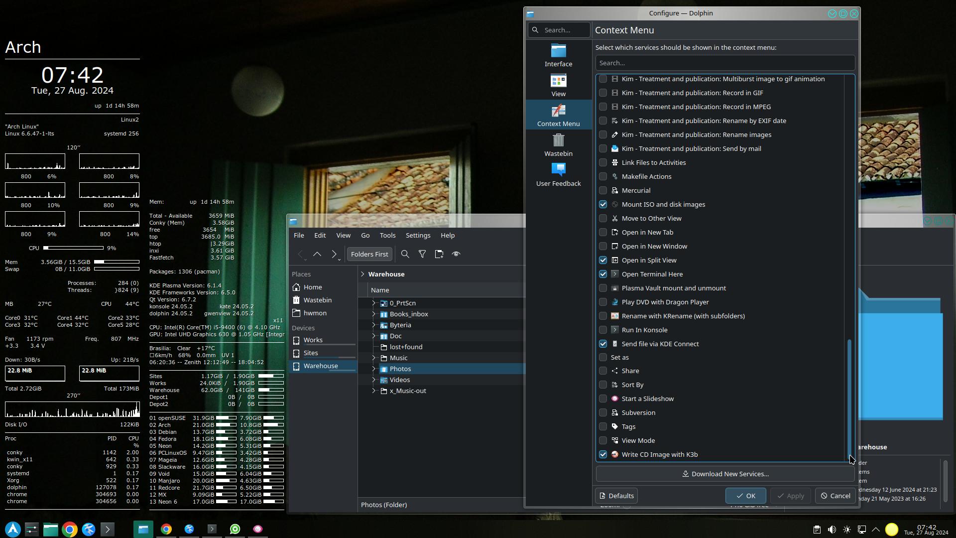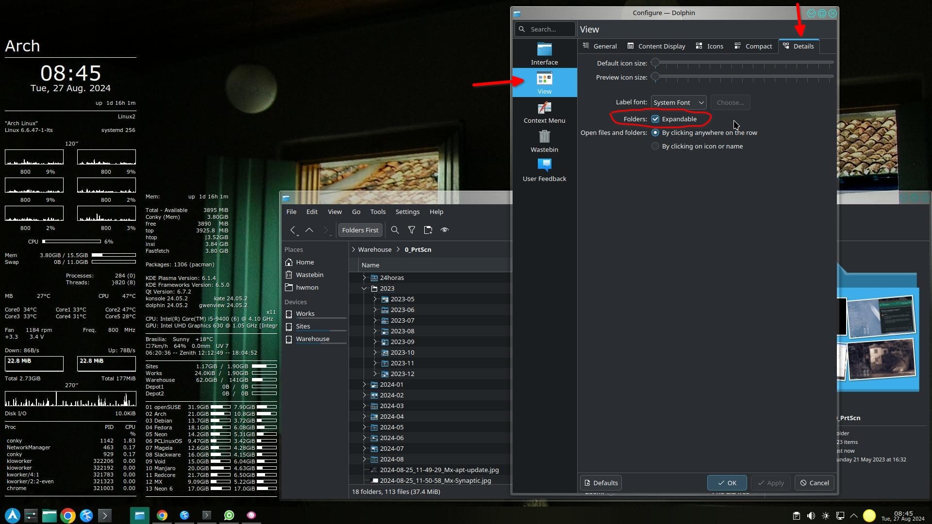 O Plasma tem uma combinação praticamente infinita de configurações. Recentemente aprendi muitas coisas com minha mulher migrando para Plasma no Debian 12. Ela tem um pensamento bem diferente do meu, no sentido que eu sou mais ‘mental textual’ e ela mais ‘organizacionista visual’ (kkk inventei agora essas definições). Justamente por isso vou explicar em texto e sem imagens.