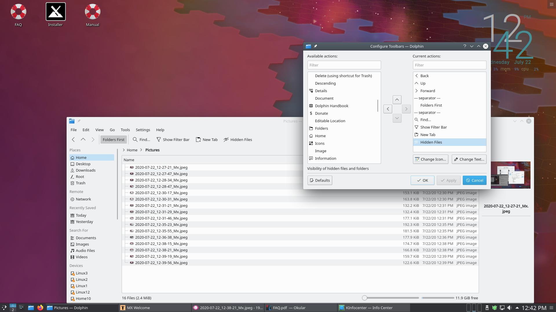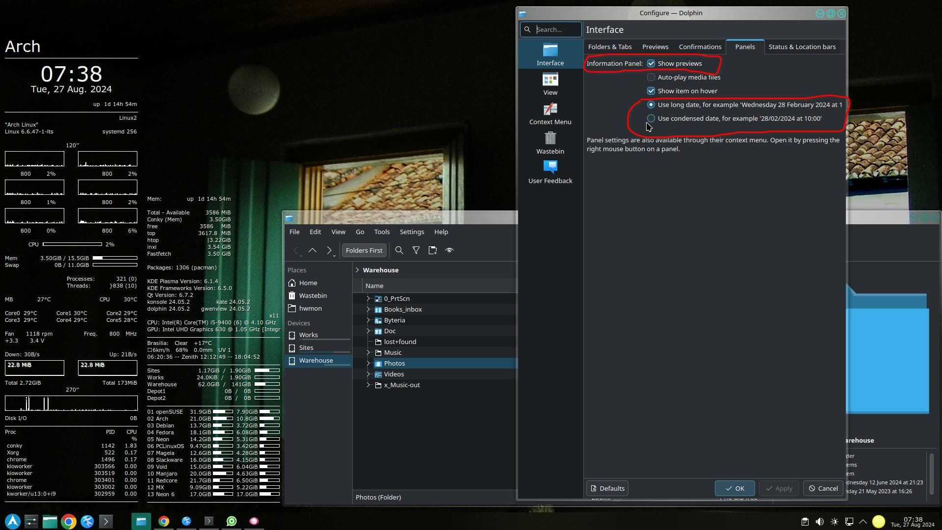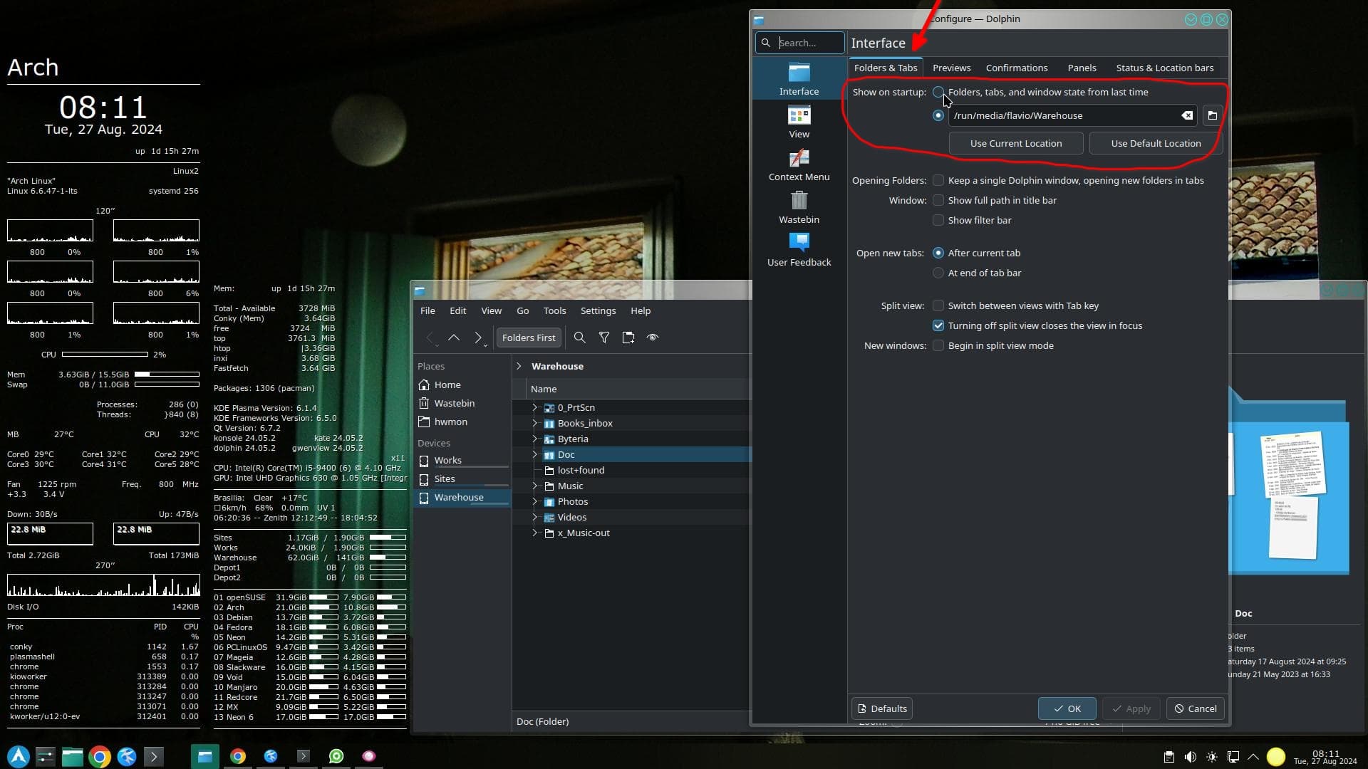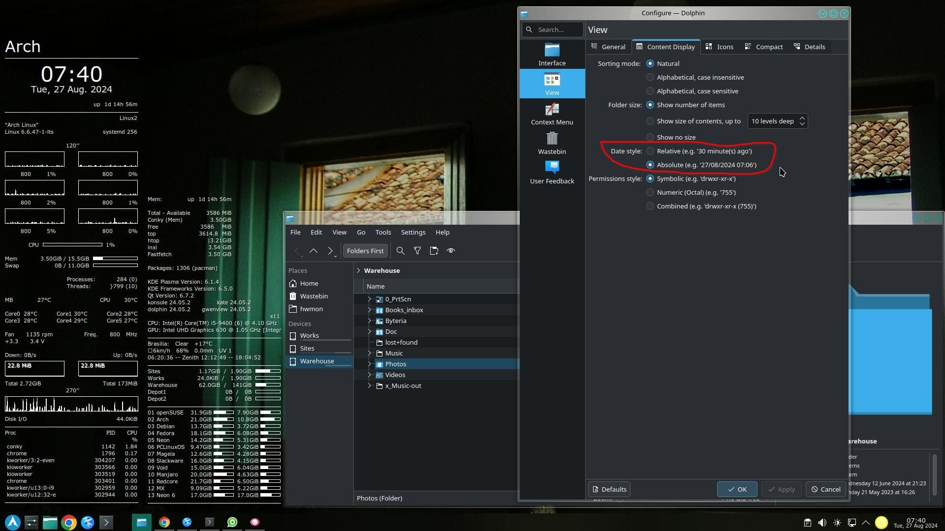 O Plasma tem uma combinação praticamente infinita de configurações. Recentemente aprendi muitas coisas com minha mulher migrando para Plasma no Debian 12. Ela tem um pensamento bem diferente do meu, no sentido que eu sou mais ‘mental textual’ e ela mais ‘organizacionista visual’ (kkk inventei agora essas definições). Justamente por isso vou explicar em texto e sem imagens.