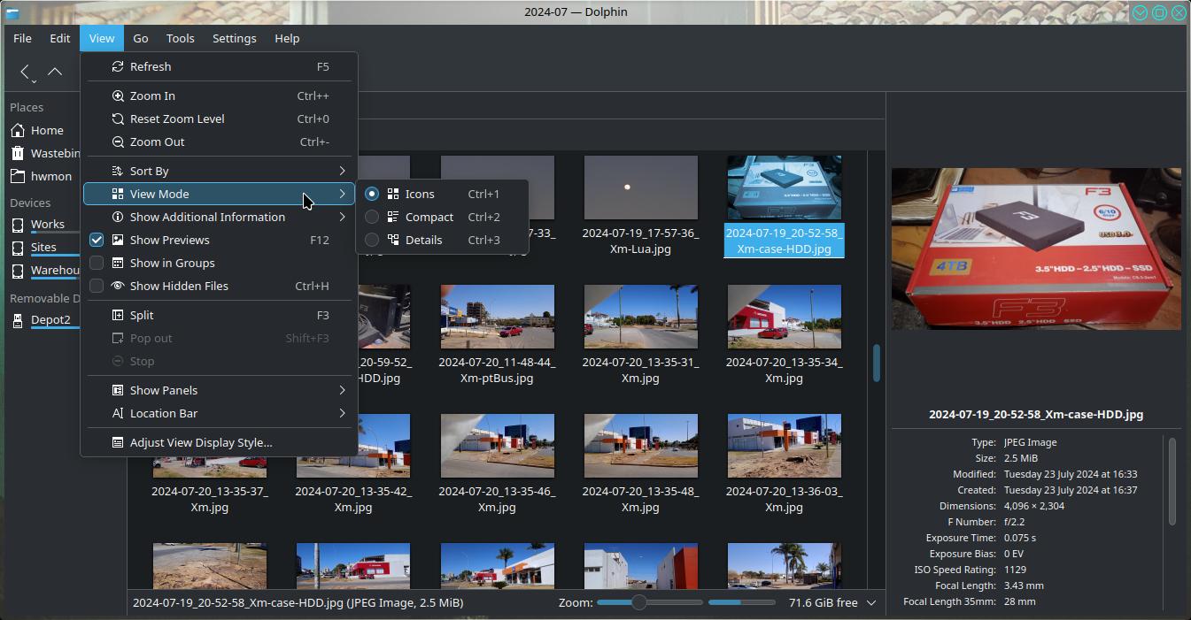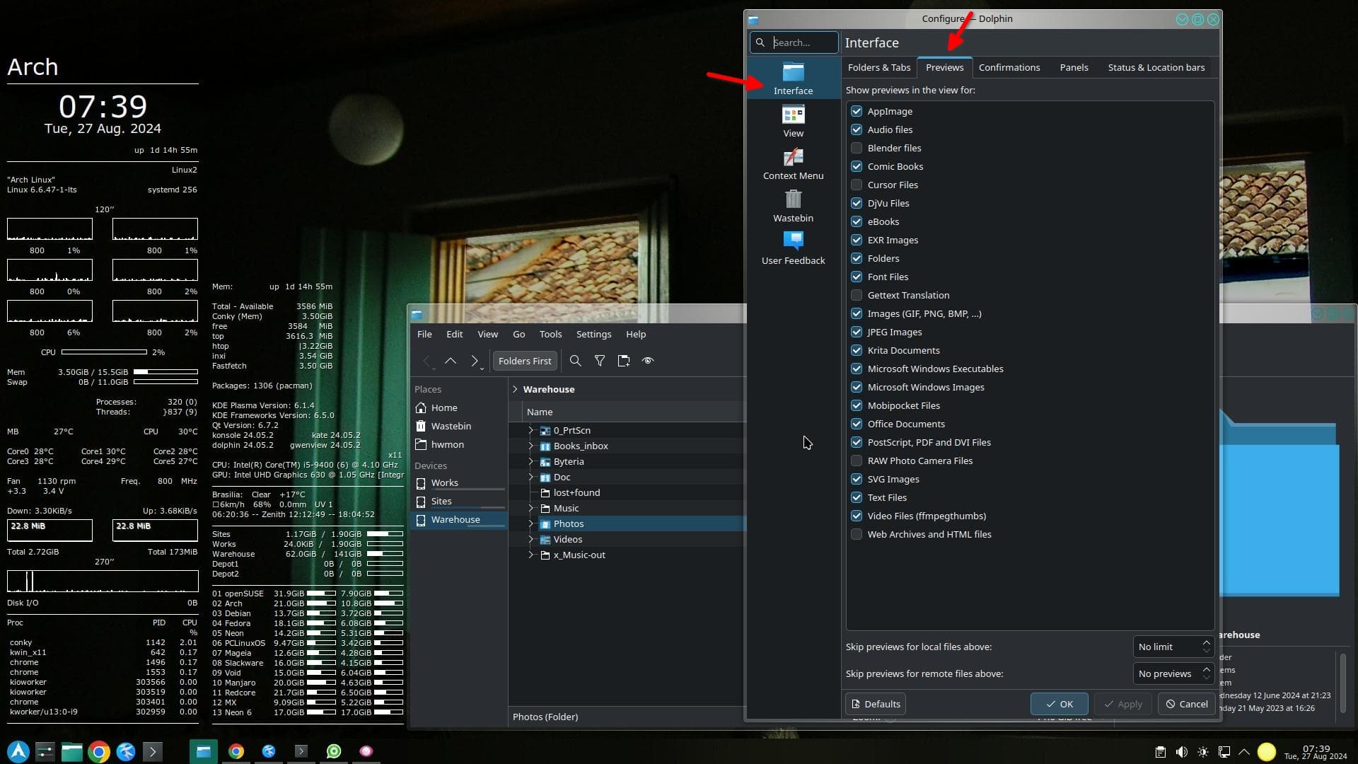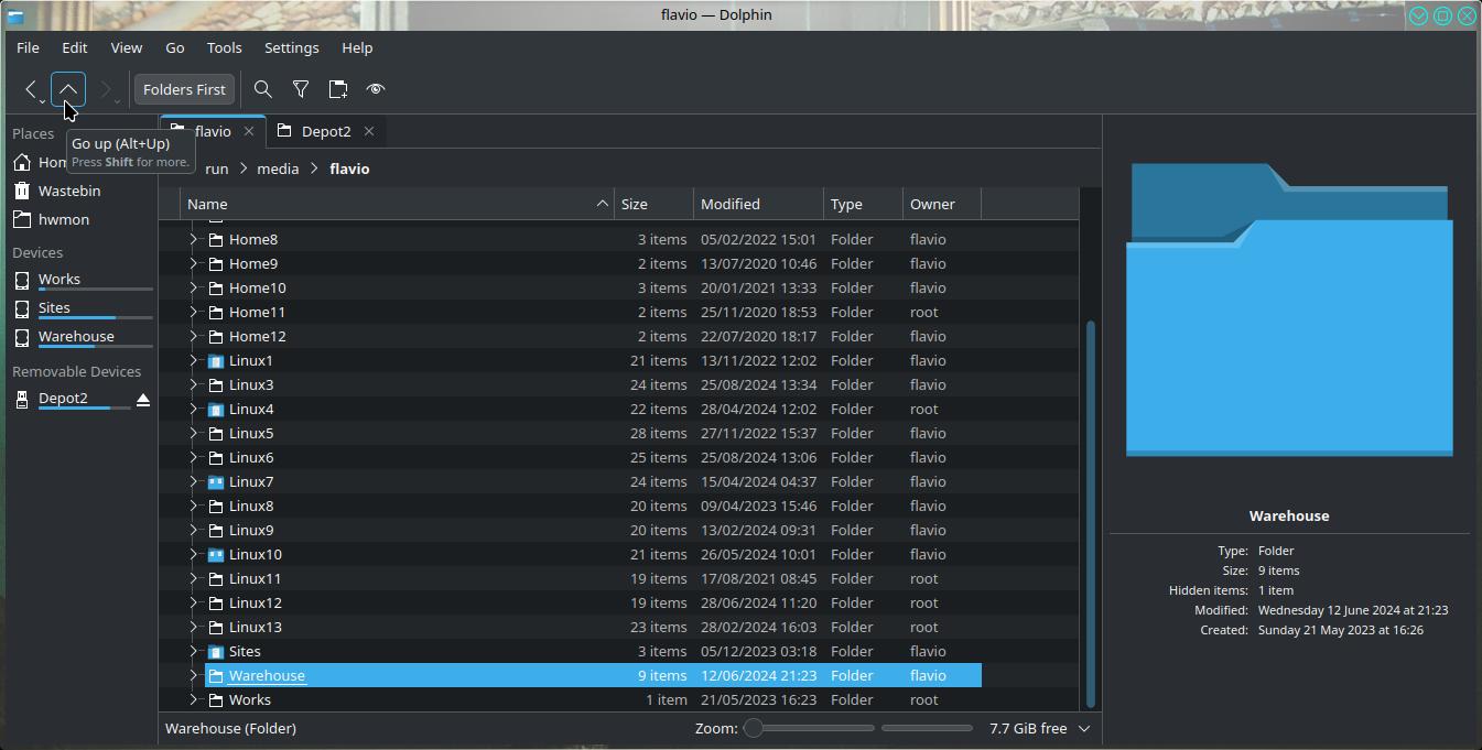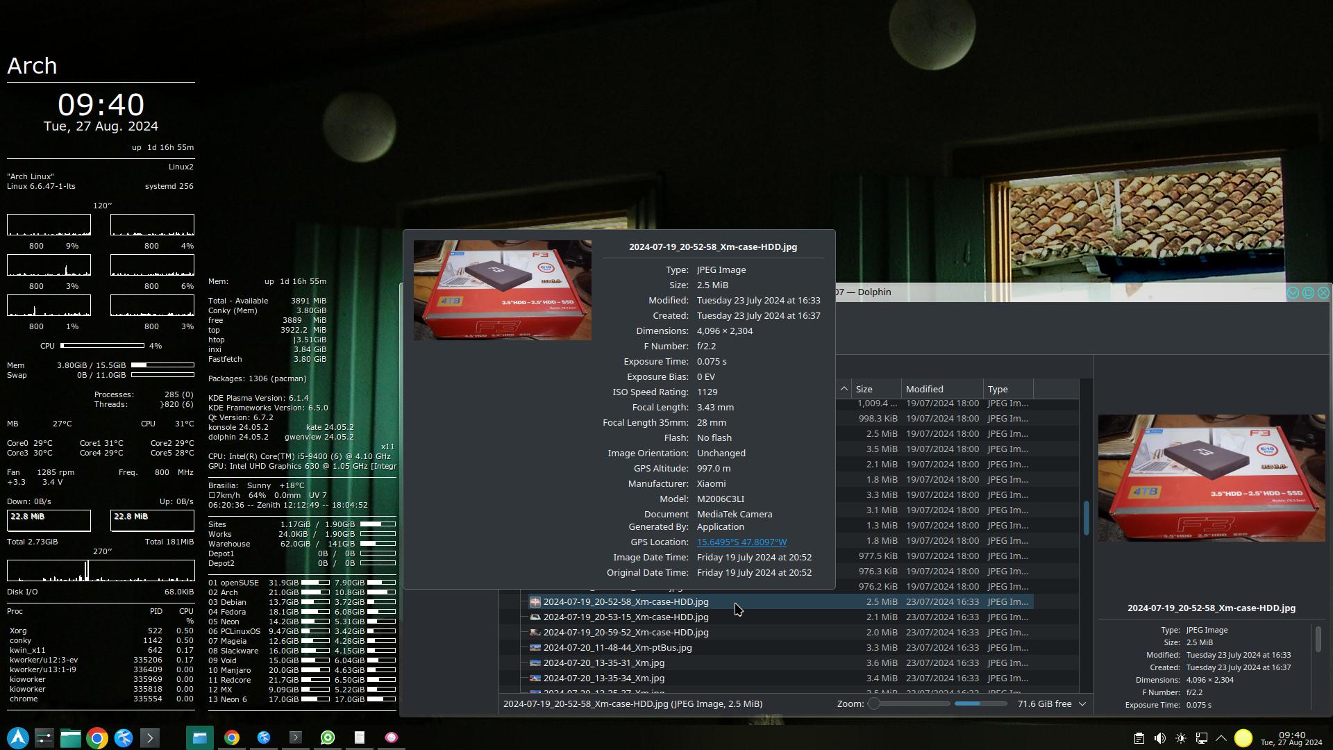 O backup integrado do Plasma é muito bom, fácil e integrado. Rapidamente selecionamos a pasta pessoal (exceto pastas de jogos) para backup em disco externo. O primeiro é demorado, mas depois ficou muito bom: é espetar o disco e já aparece o popup para fazer o backup incremental.