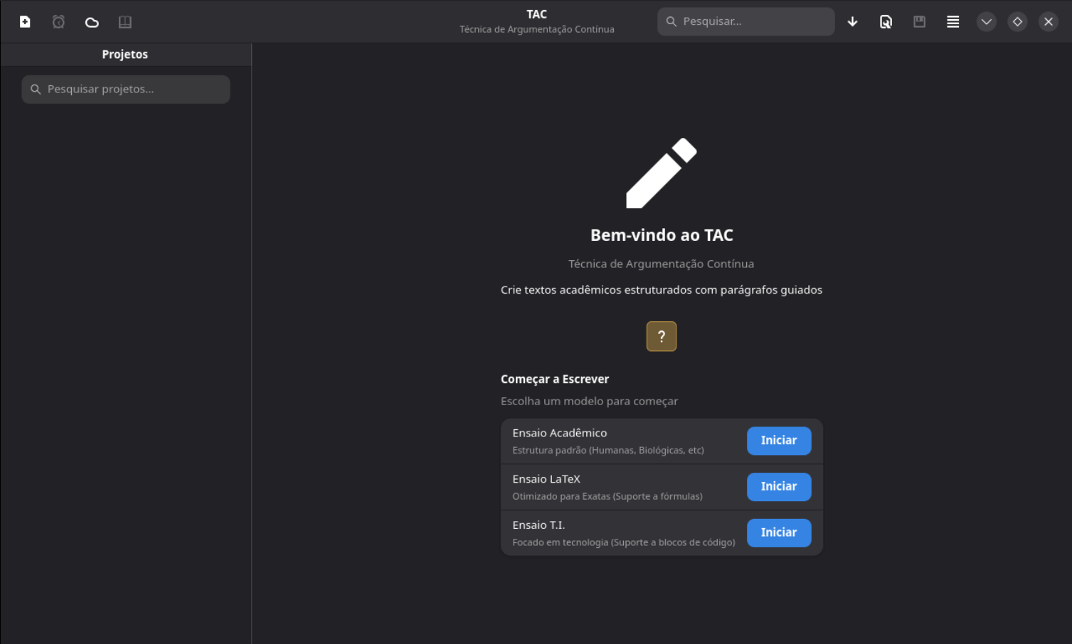 No Tac Writer é possível usar três modelos de projetos diferentes: