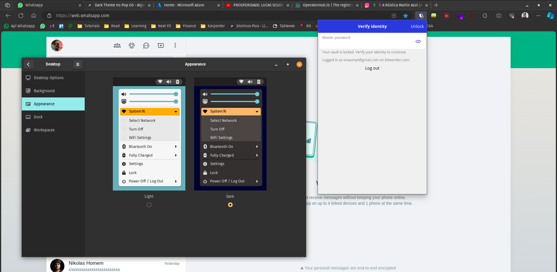 Estou com um problema ao usar o Pop OS, selecionei o Dark Theme nas configurações e todas as janelas do sistema ficaram dark.