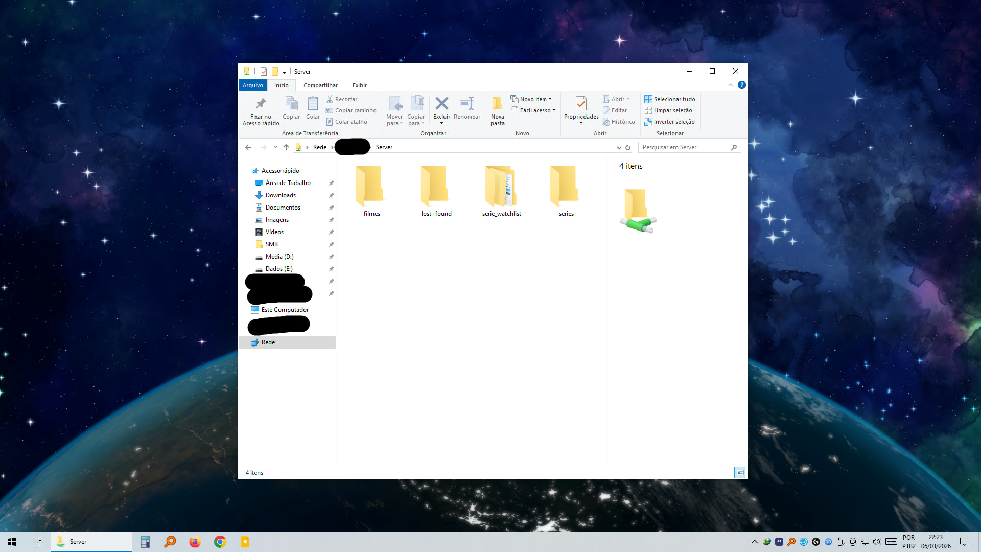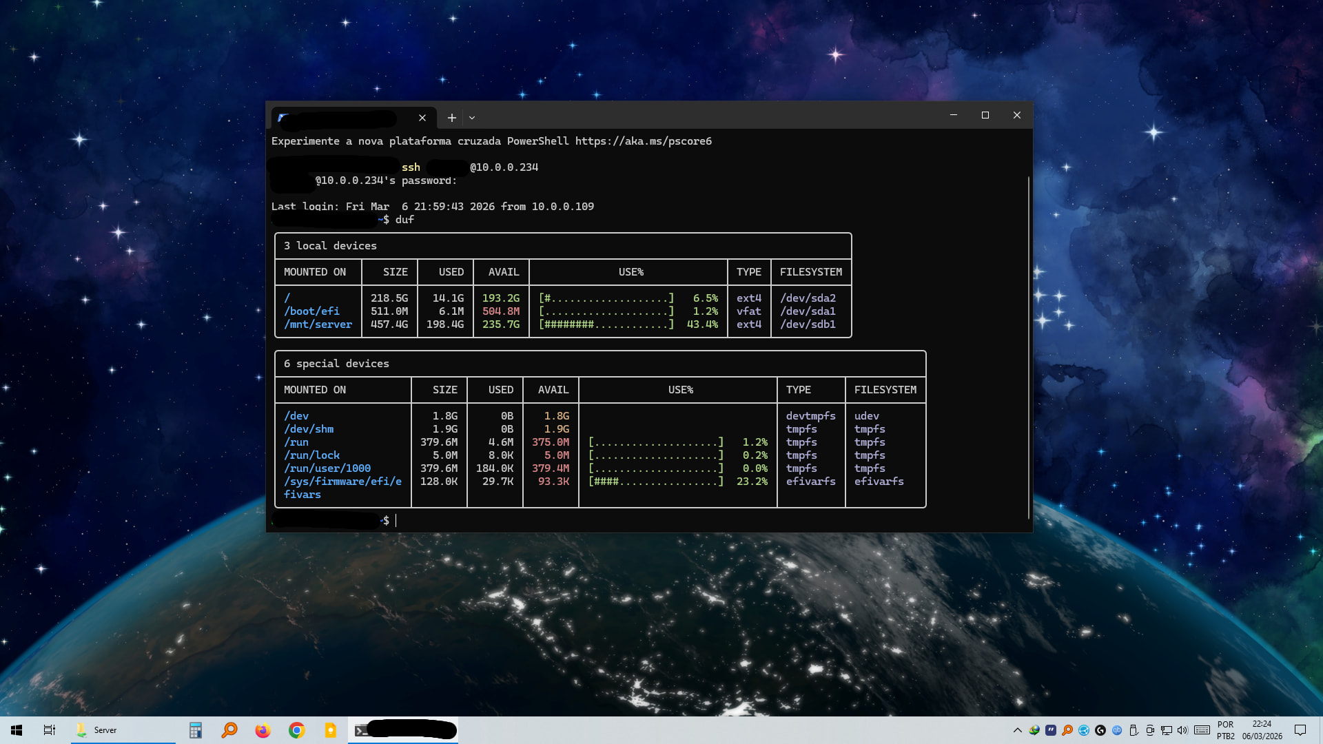 Segue algumas imagens em que acesso o hd a partir do windows, o neofetch e uma ferramenta chamada duf em que eu verifico de forma amigável como está a capacidade do hd