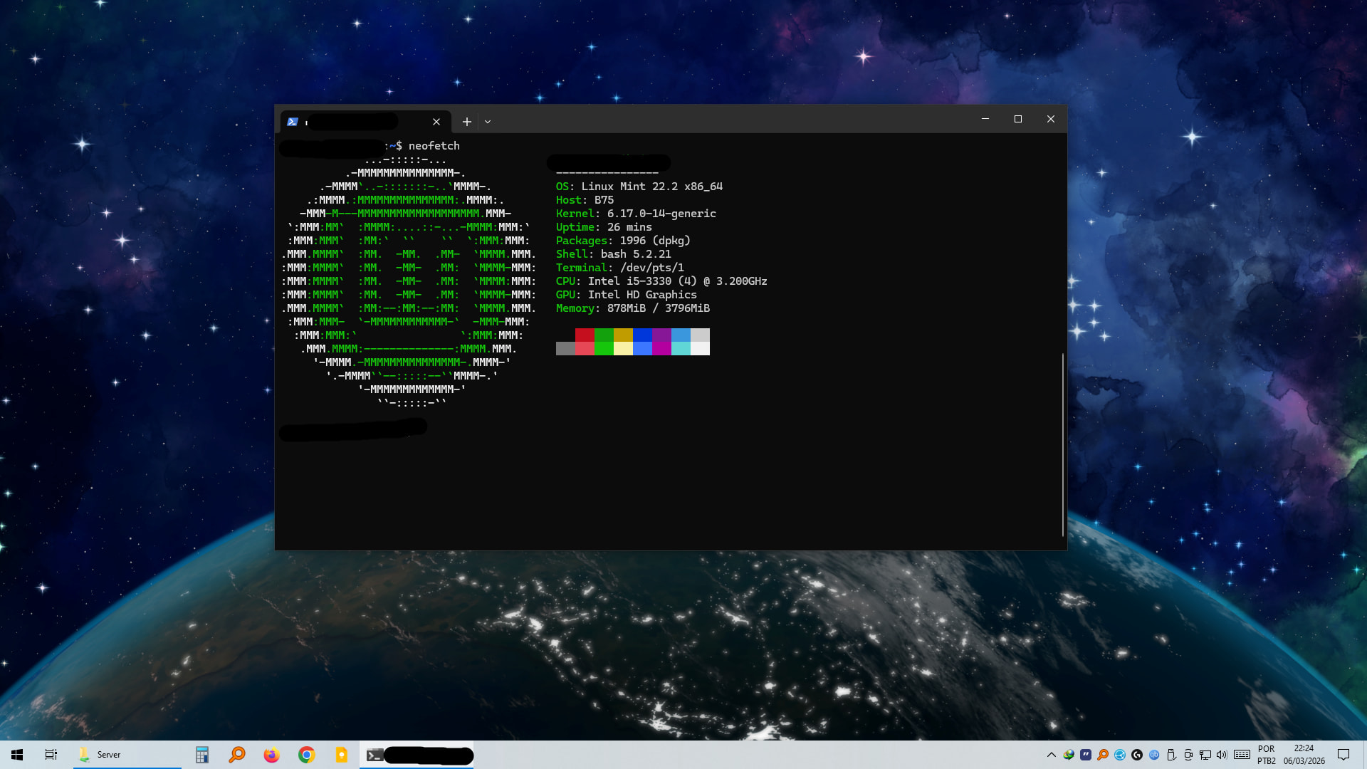 No SSD está instalado o linux mint 22.2 e o HD está formatado em ext4 e montado em /mnt/server