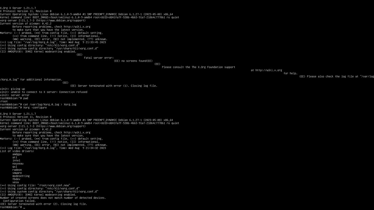 Edit 2: Perguntei novamente para o modelo de linguagem sobre o erro do no screens founds do Xorg e ele sugeriu rodar o seguinte comando: