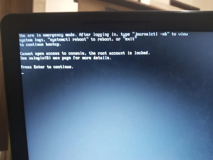 1 - Tente digitar CTRL+D para ver se consegue entrar no prompt de comando. Se conseguir, edite o FSTAB: