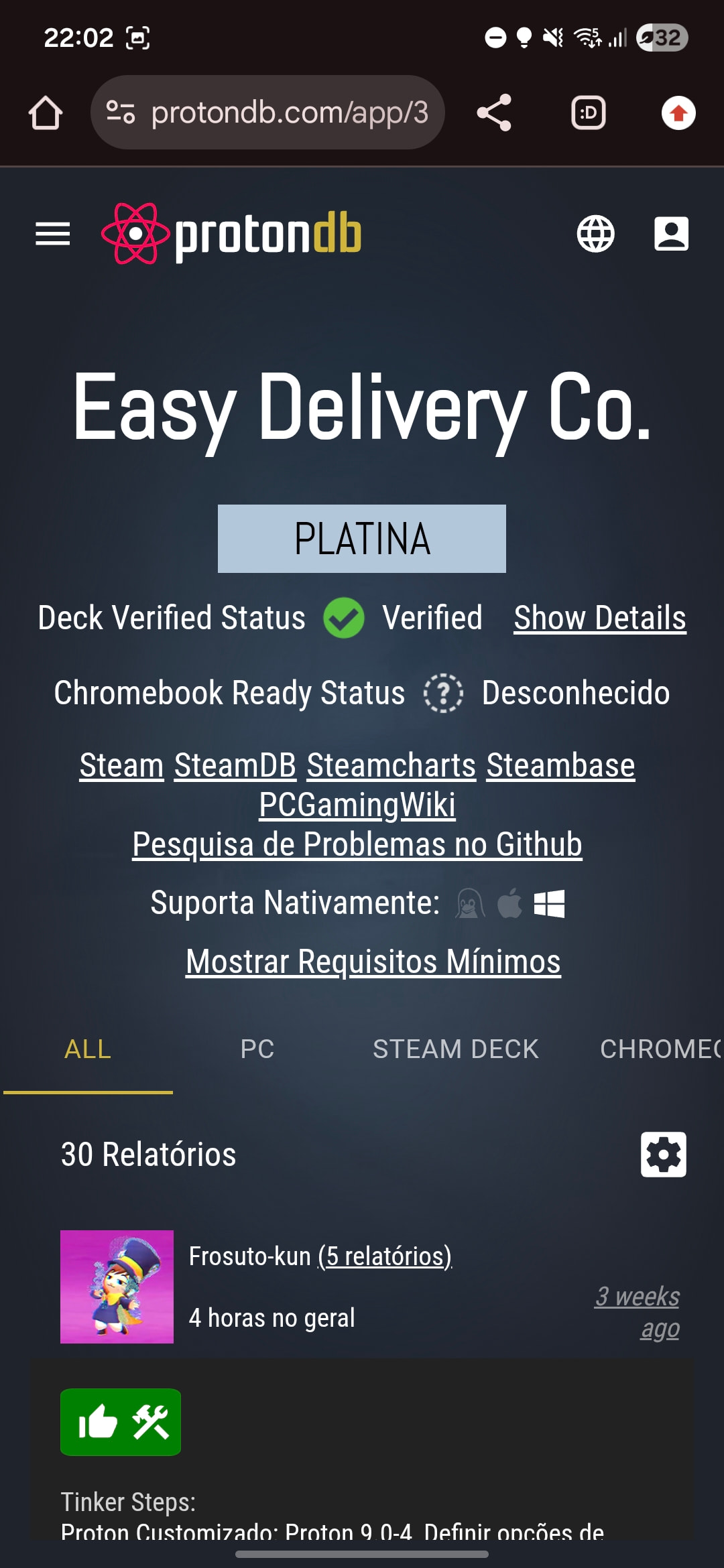 Inicialmente eu tentei abrir dois jogos ontem, mas não pesquisei ambos no site protondb. Eu resolvi testar eles agora pouco e apenas um deles abriu normalmente. O “Easy Delivery.”