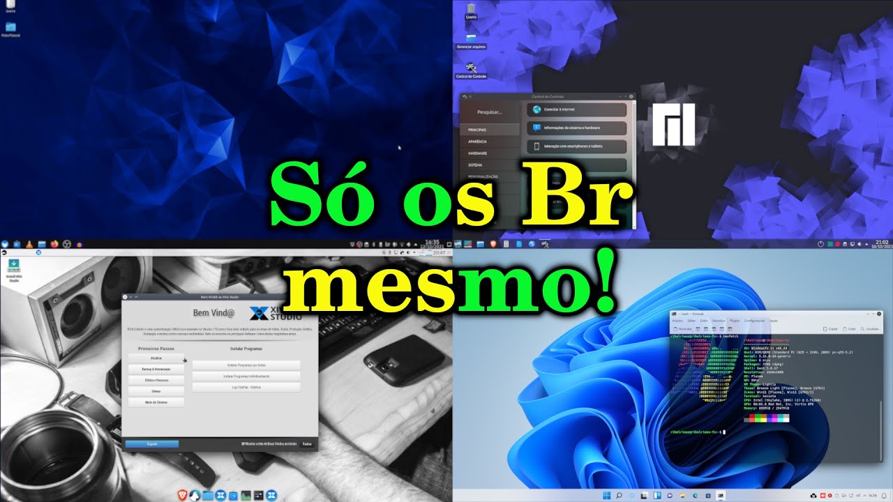 WindowsFX: https://www.windowsfx.org/ Regata OS: https://www.regataos.com.br/ Big Linux: https://www.biglinux.com.br/ Amarok Linux: https://amaroklinux.org/ Tiger OS: https://mestresemlinux.com.br/wp/tigeros/ BrOS: https://sourceforge.net/projects/bros/ Xiva Studio: https://xivastudio.org/download/