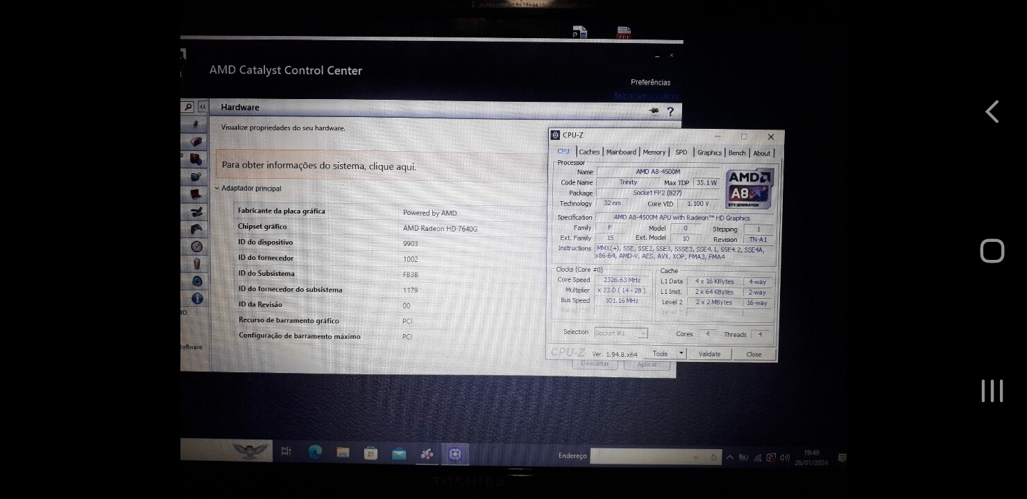 Talvez pesquisar nas páginas da Toshiba para ver se encontra drivers utilizáveis em Linux. Ou identificar se existe algum dríver específico para o crossfire ou se apenas os drívers da AMD já cuidam disso no sistema.
