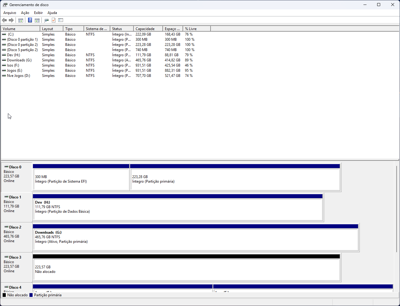 Nele você vai conseguir apagar a partição que você não quer mais e poderá estender a partição do Windows para ficar com o tamanho que tinha antes.