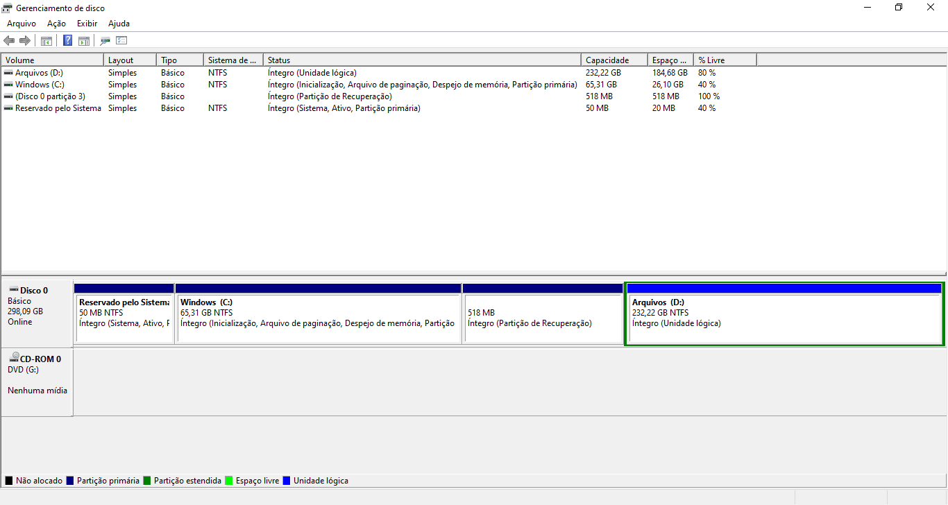 Depois de gerenciamento de disco pra lá e pra cá, meu HD ficou dividido desta forma: